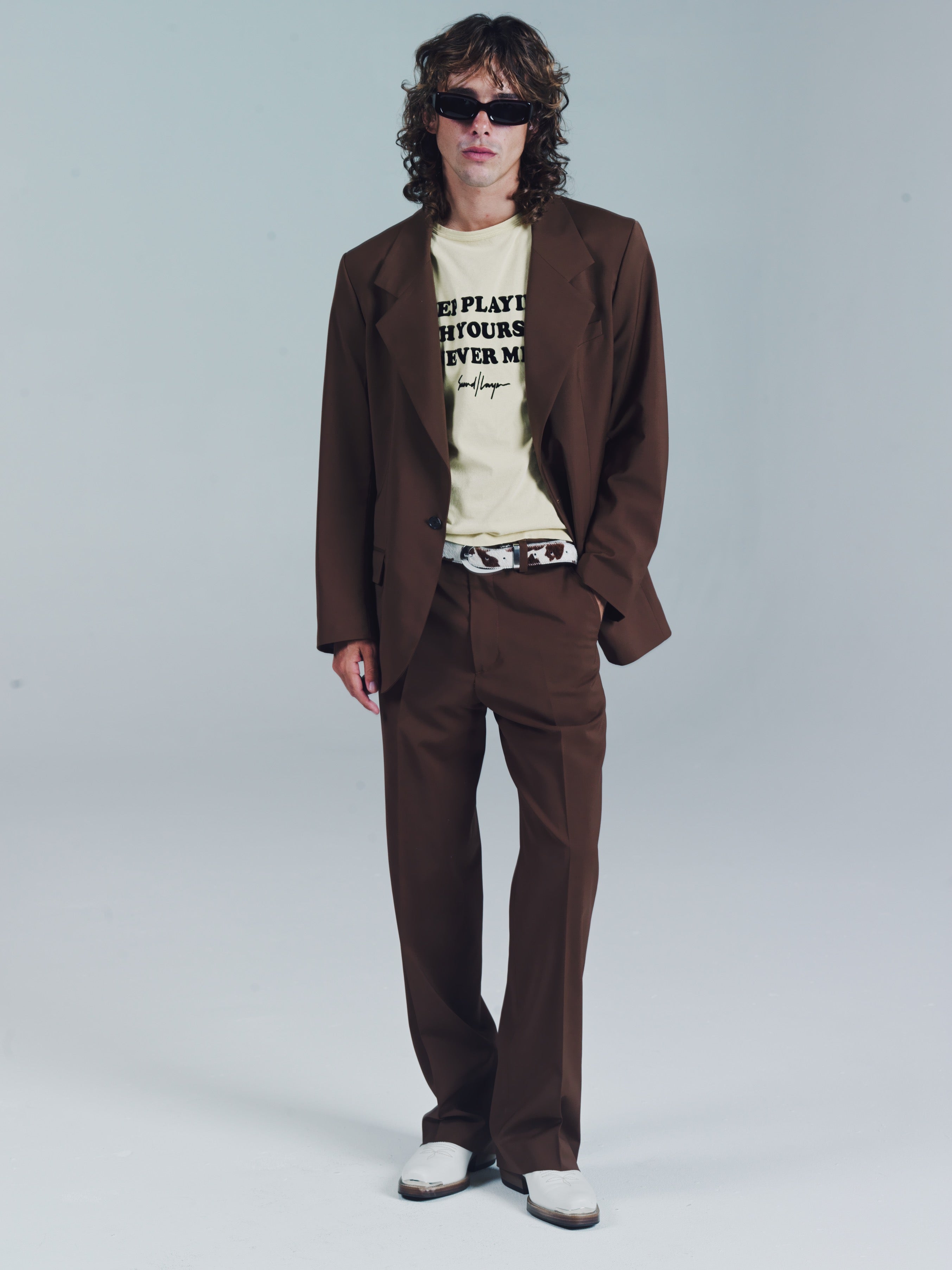 Tailored from premium wool and designed with intention, the trousers are sharply creased and ready to move. Made in Italy, every line and detail is considered—a reflection of Second Layer’s commitment to structure, integrity, and timeless form.