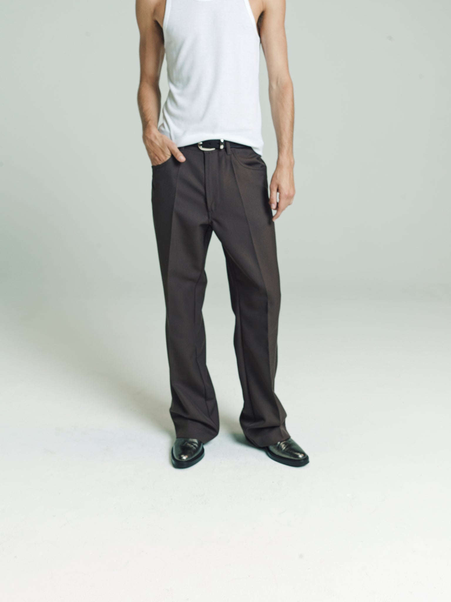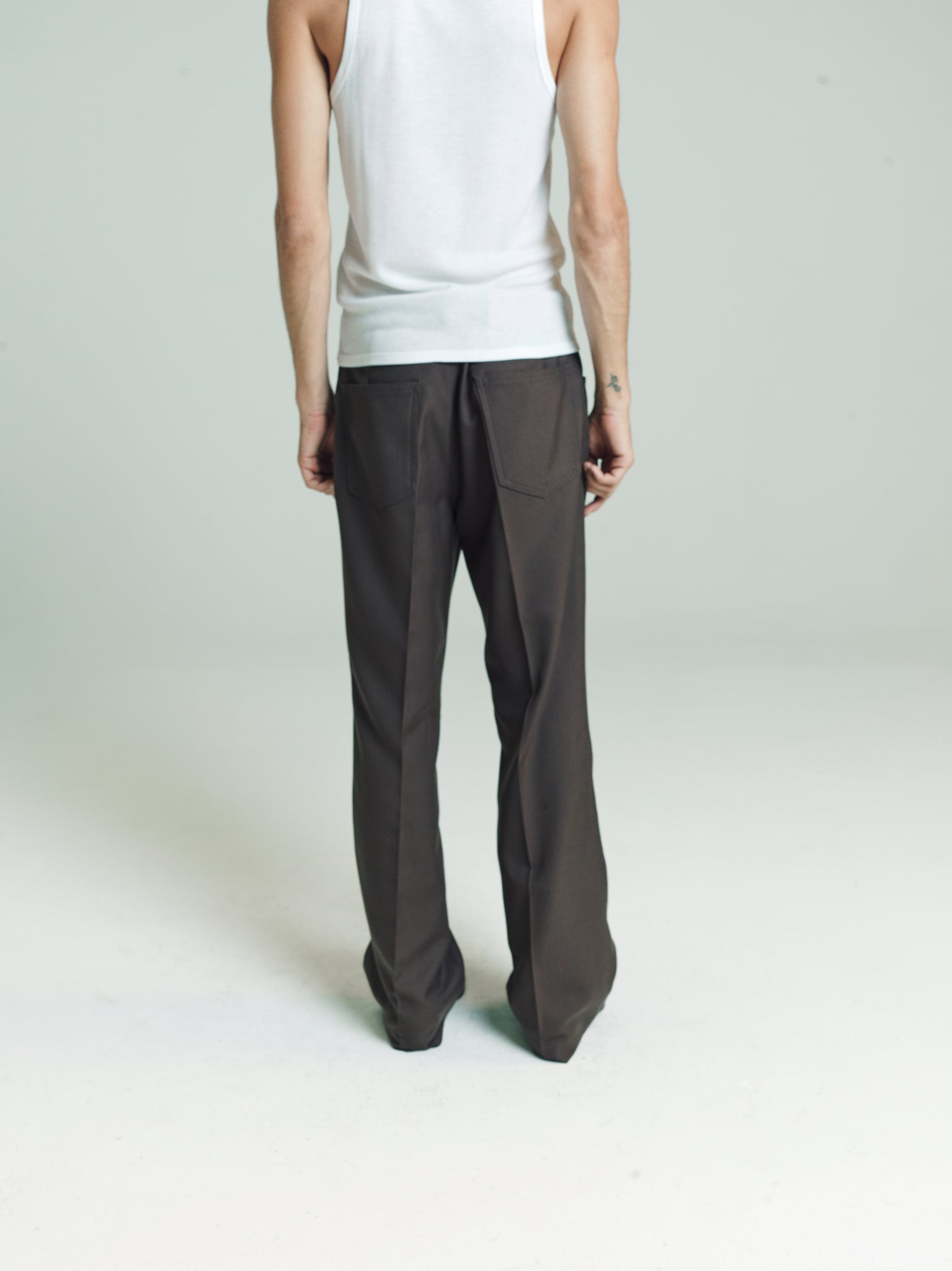 Fully constructed waistband with metal shank closure, zip fly, front scooped pockets, Two back patch pockets. Flared cut, trues to size. Wear them true to size to get that real suavecito vibe or size up for a more casual look. Whatever the case, stay ready so you don’t have to get ready. Model is 5'11 and wears a Sz. 46 Dry clean and keep crispy. If you're really down then get them creased. If you're really really down, then do the crease yourself while listening to Ralfi Pagan.