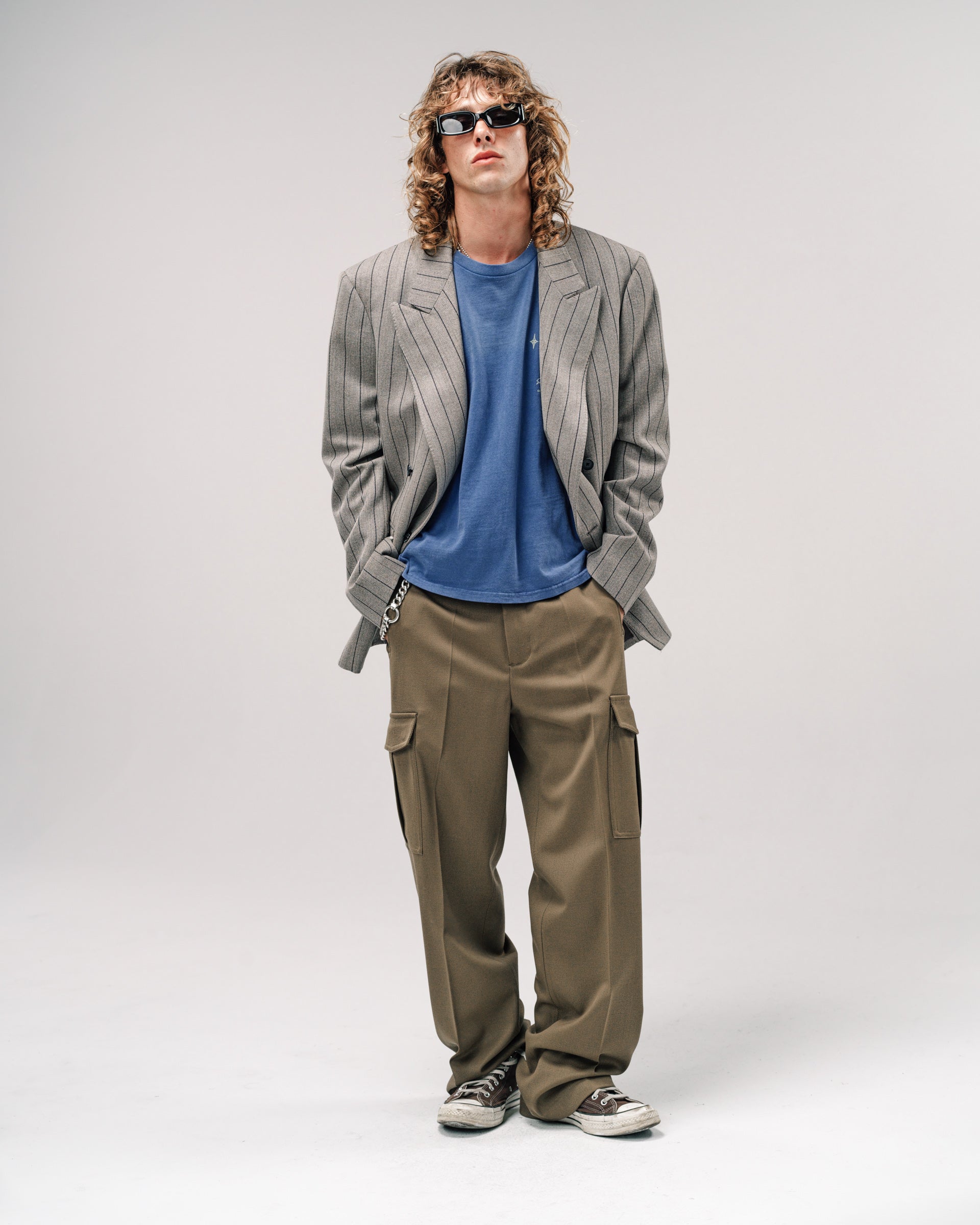 Tamed Tailoring at its most versatile. Done in a beautiful 100% Wool vintage inspired pinstripe woven in Italy. Softly padded shoulders. Not your dads club jacket. Wear it casually with a t-shirt or dress it up. Just don't let it wear you. Model is 5'11 and wears a Sz. 46
