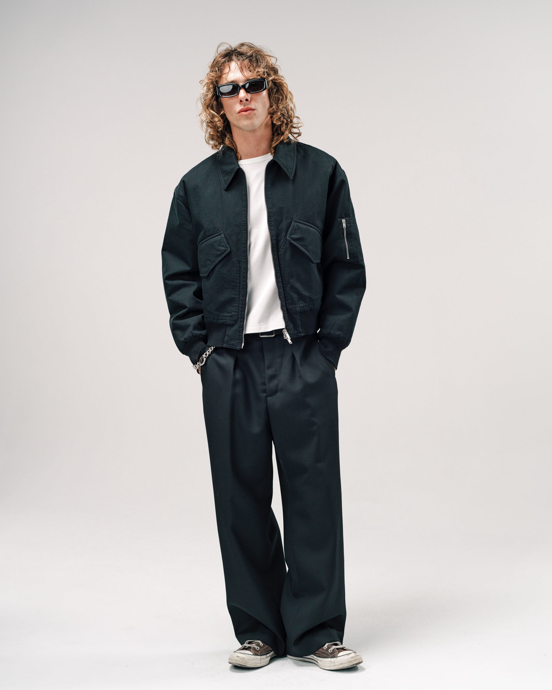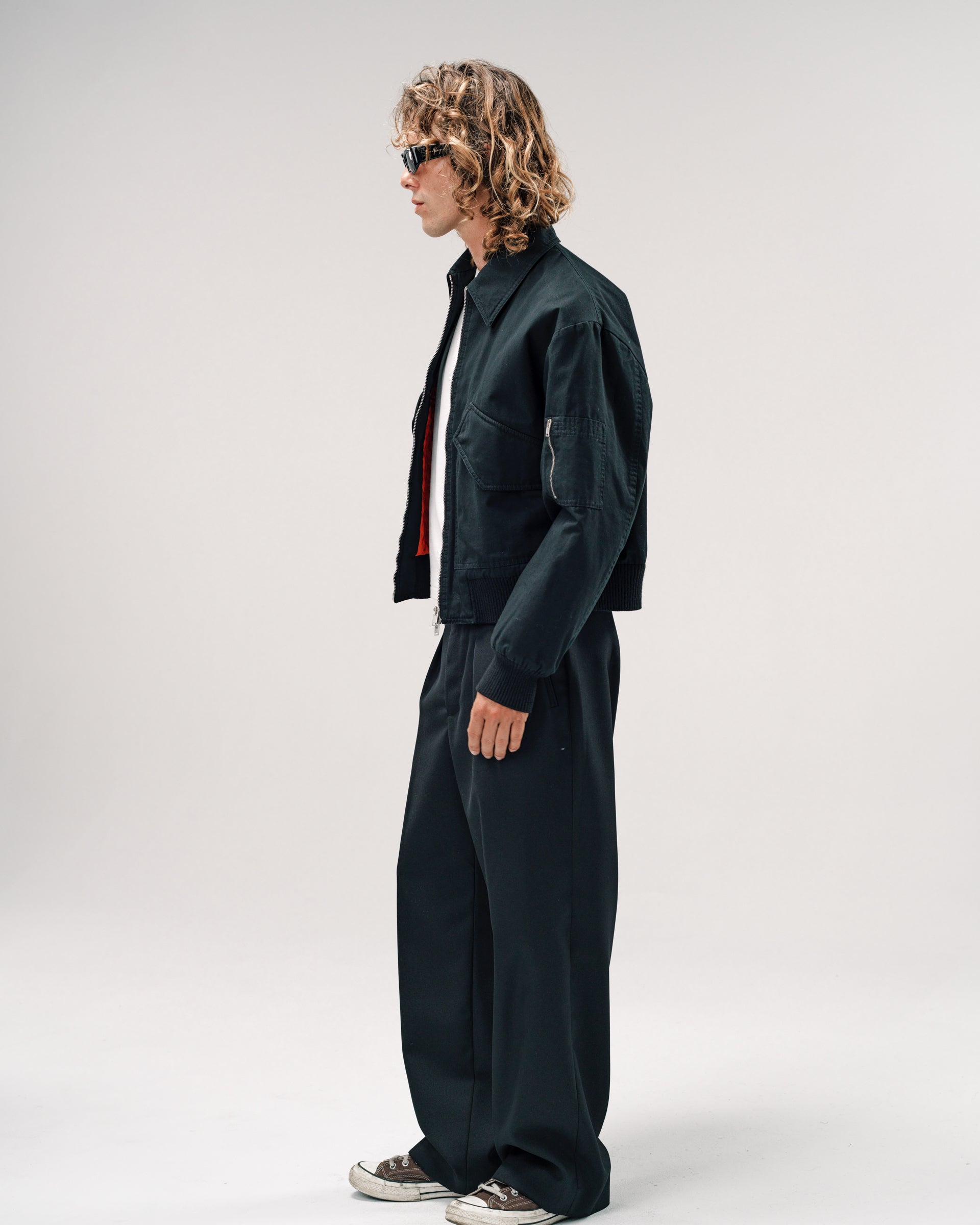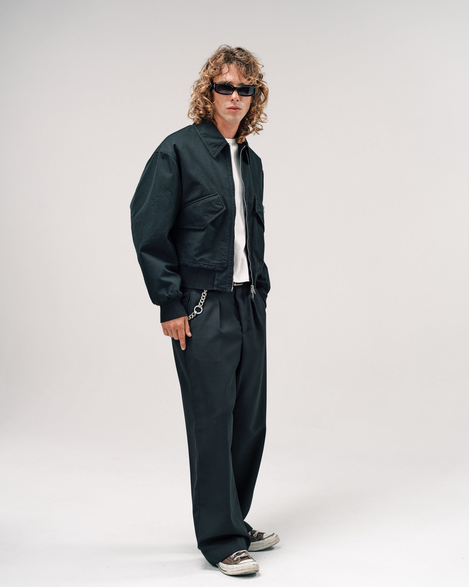 Slightly cropped and boxy fit with a drop shoulder and quilted insulation. 410 gram densely woven 100% organic cotton, high resistant, water reapelant, and PFC free. Two-way raccagni zipper, ribbed cuffs and Hem. Sleeve pocket and two Big front slanted pockets. Made in Italy.