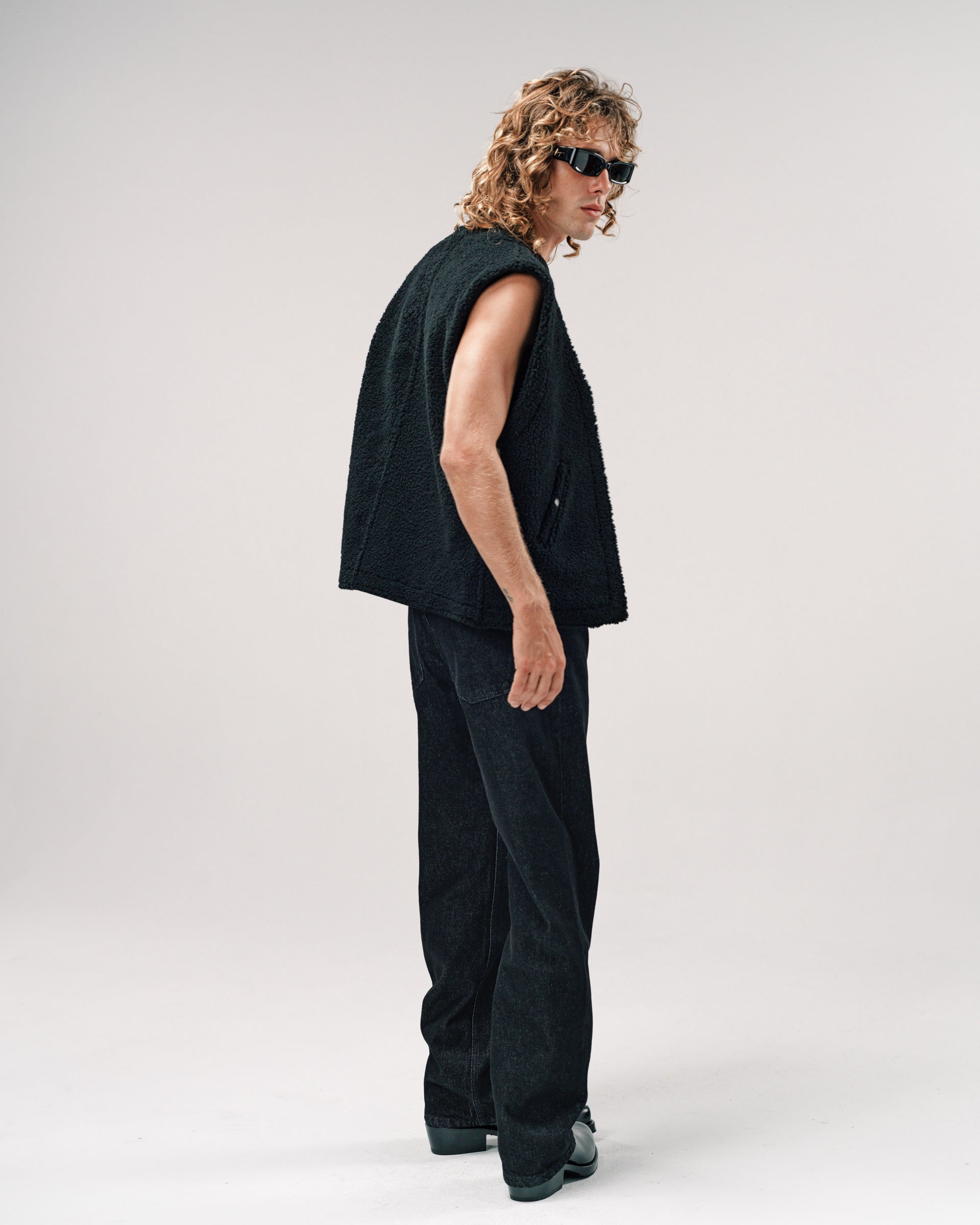 The perfect layering piece to be worn as a layered look or a outer layer over your favorite hoodie. Stay warm and layer up. Model is 6ft. And wears a sz. 46.