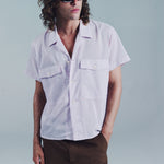 SS OPEN COLLAR SHIRT | PINK STRIPE