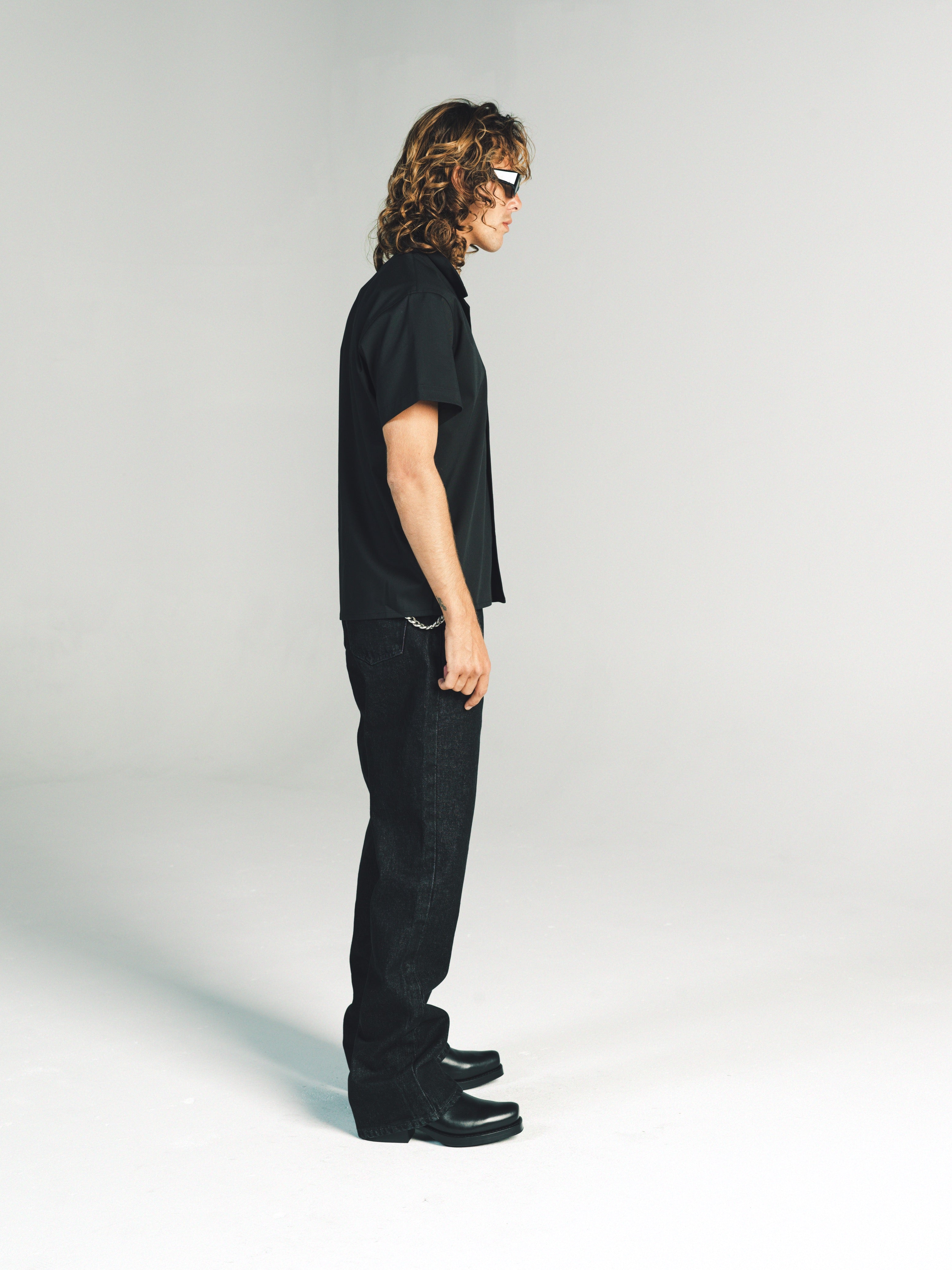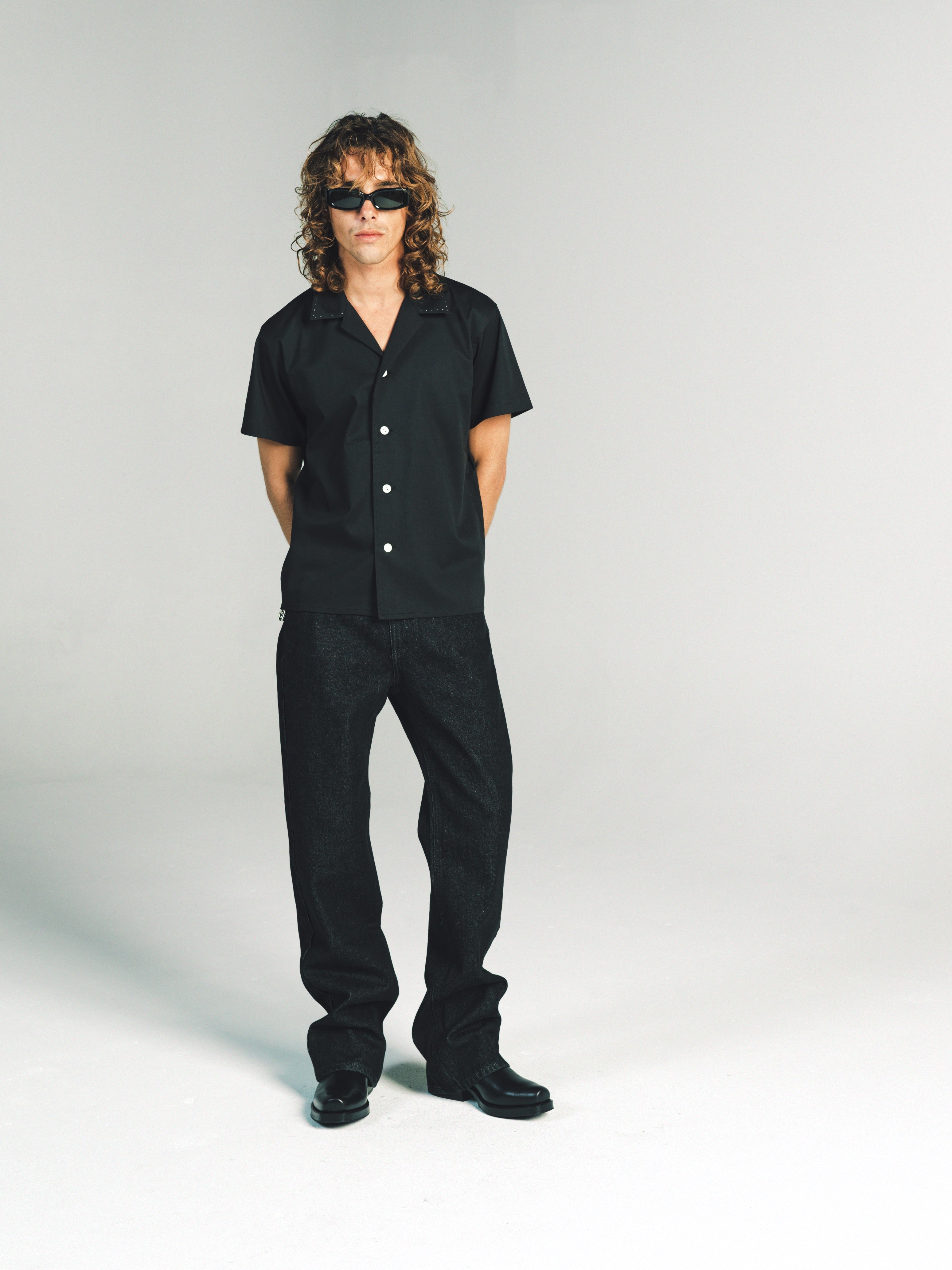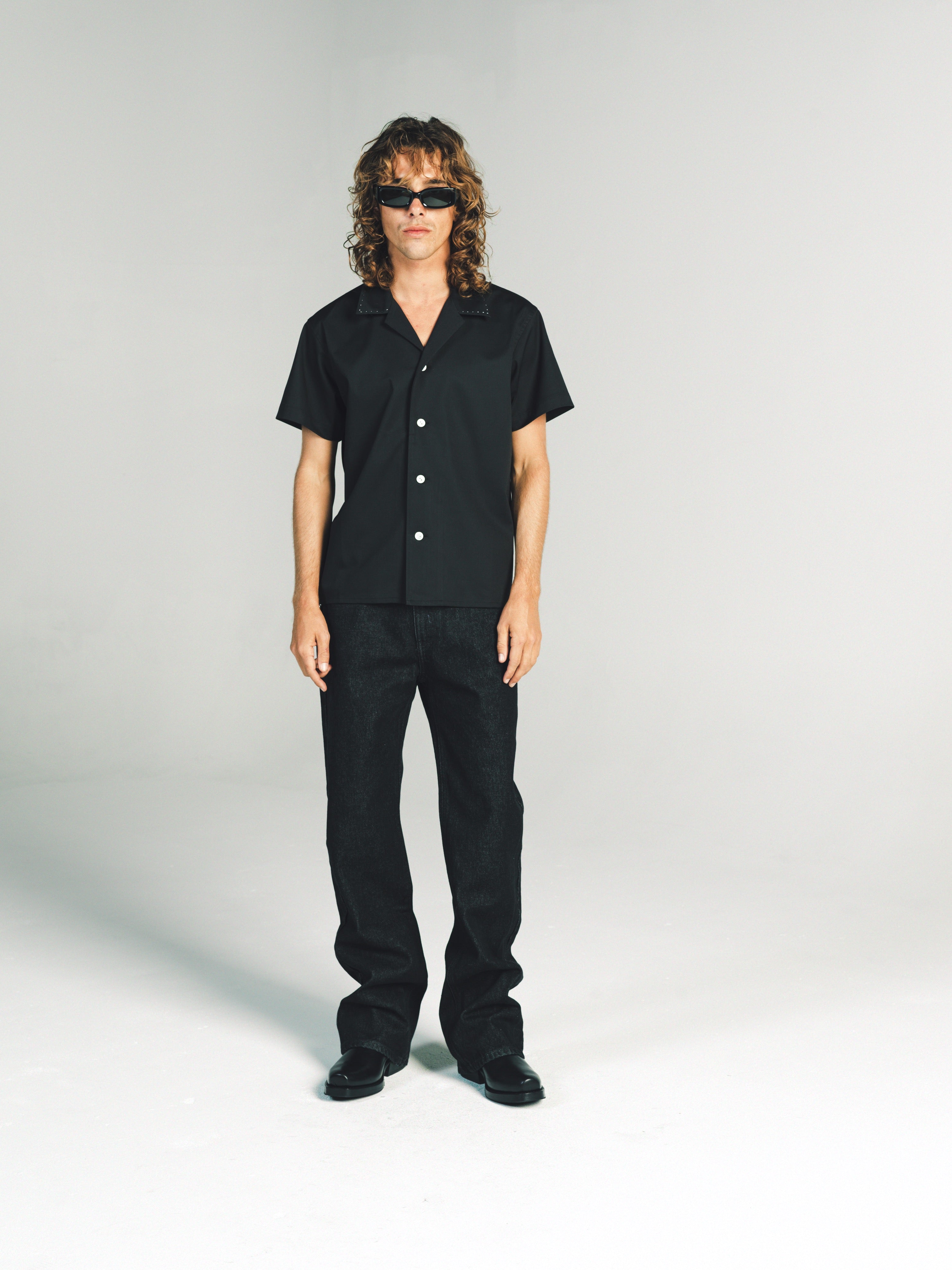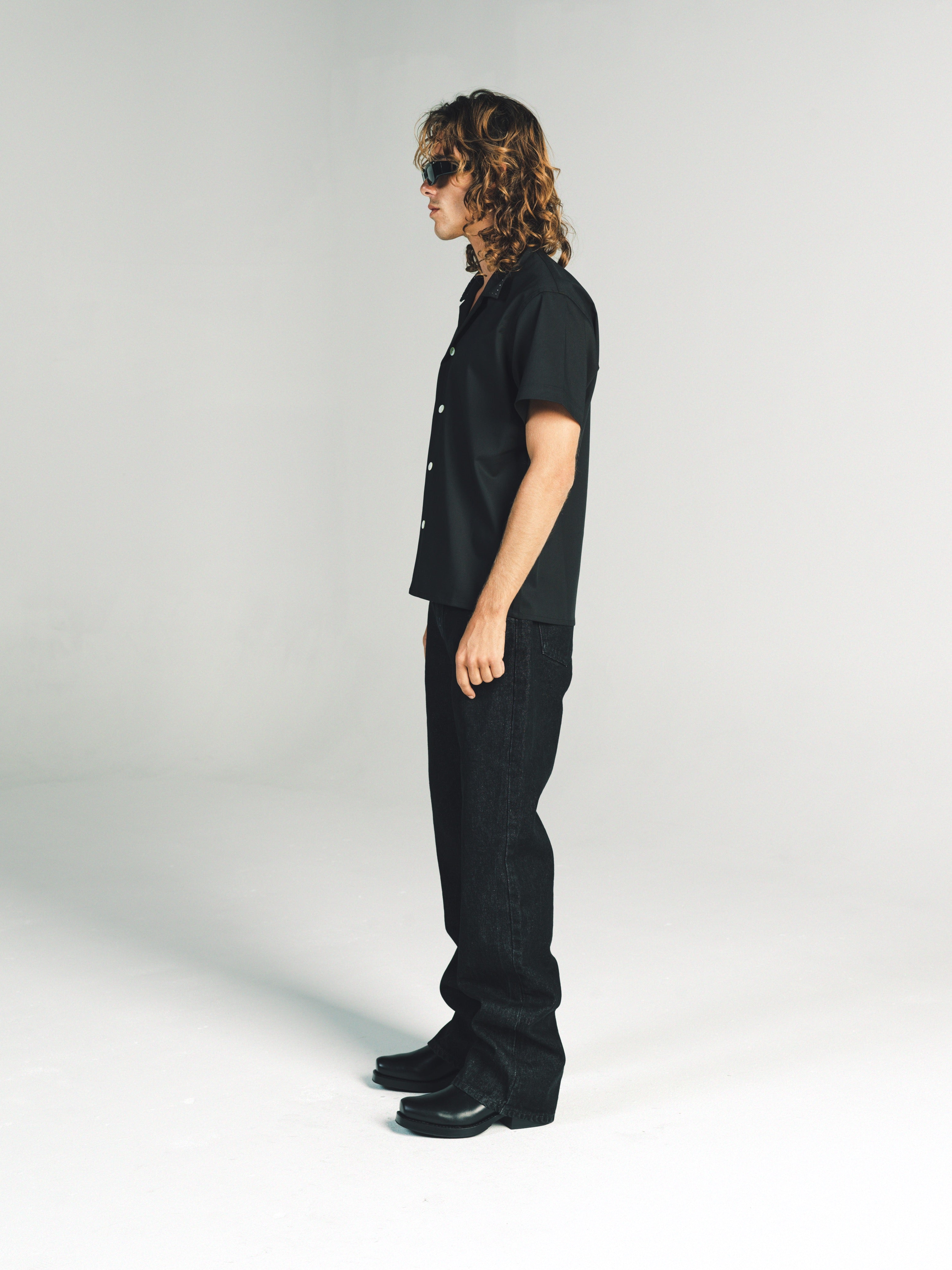 AVENUE SS SHIRT | BLACK W/ SILVER PIN STITCH