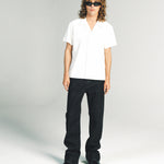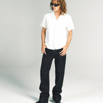 AVENUE SS SHIRT | WHITE W/ SILVER PIN STITCH