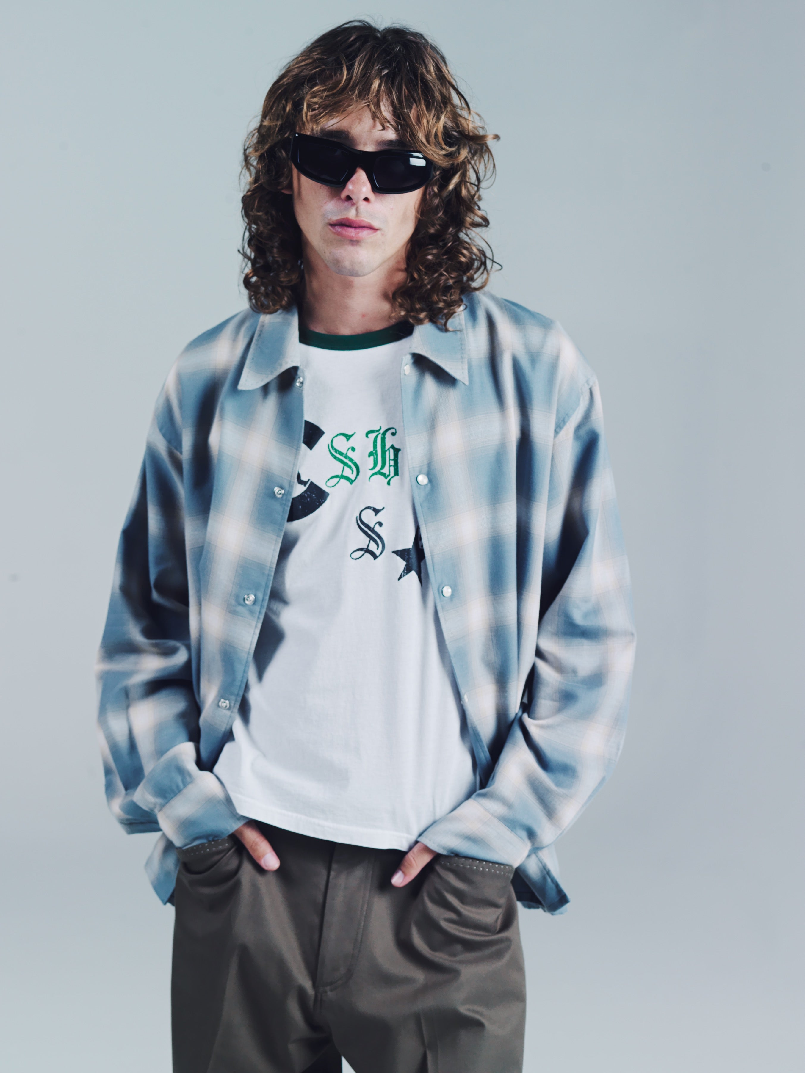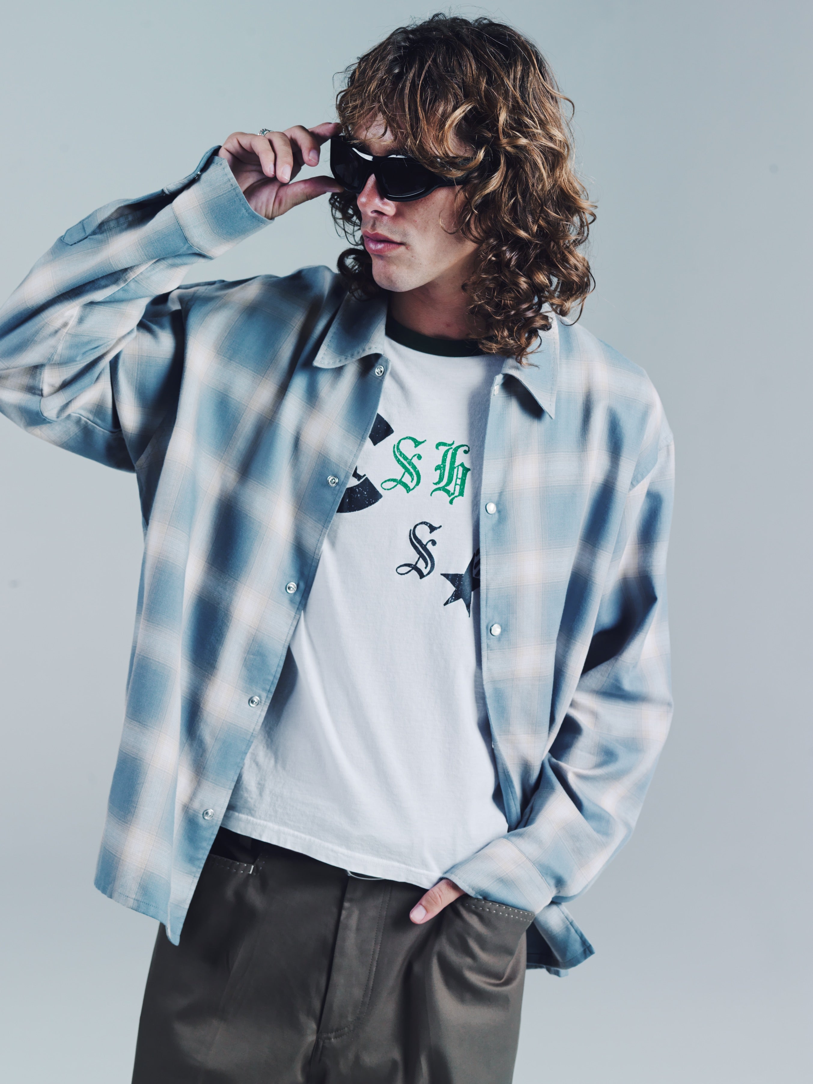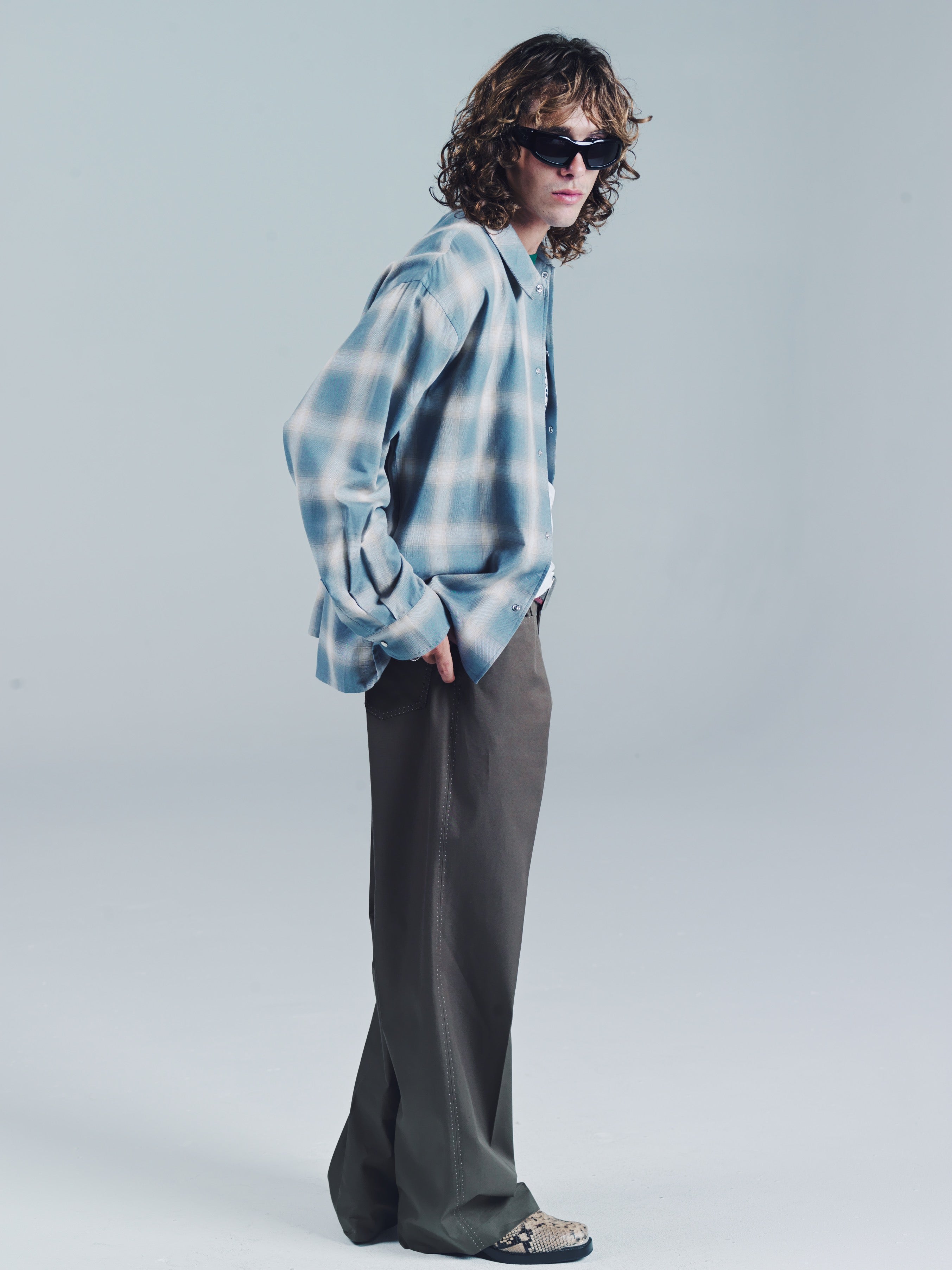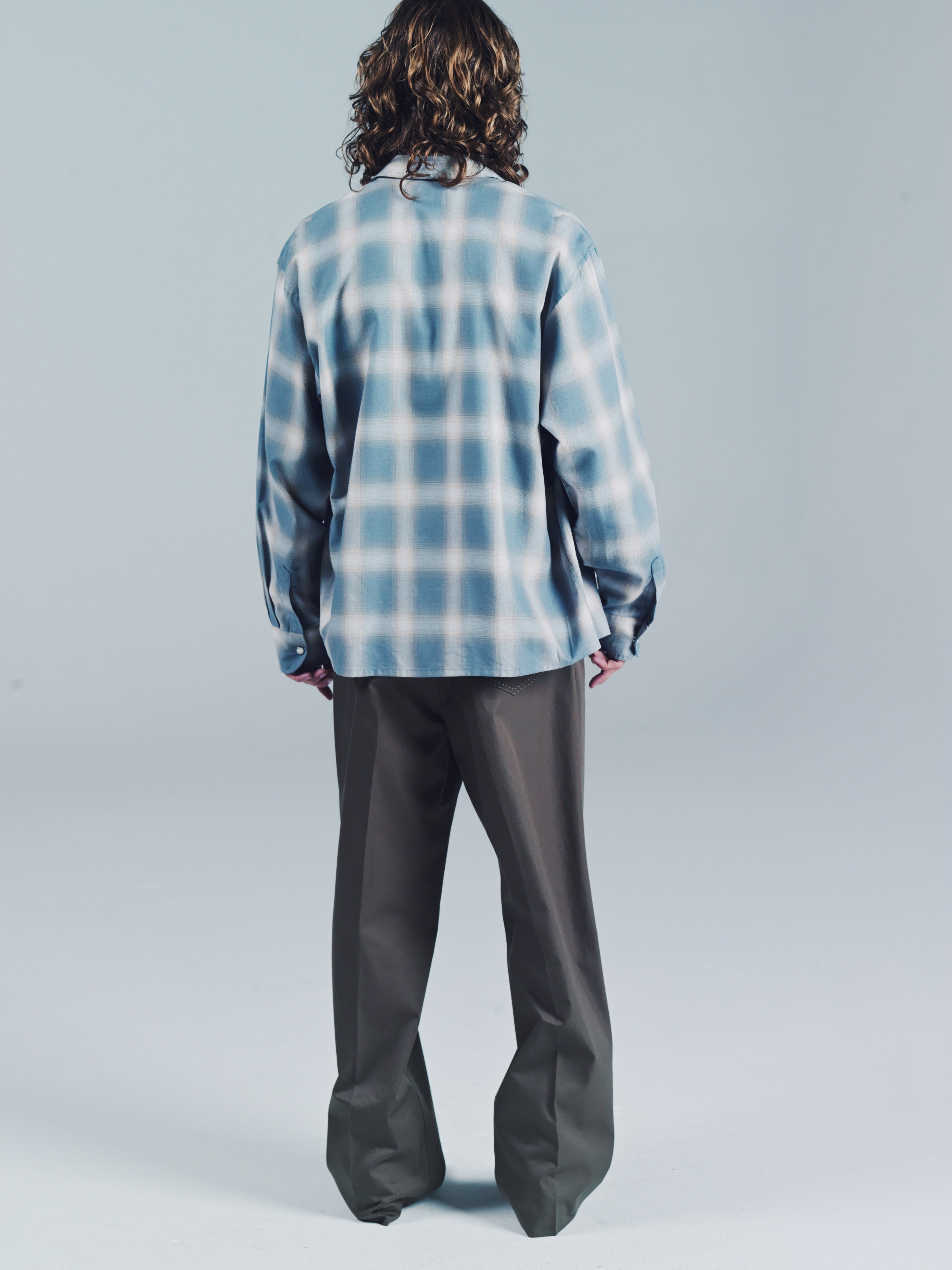 Pearl button snap button closure with hand sewn pic-stitch detail along the collar and cuffs. Easy relaxed collar and oversized fit in a Japanese ombre cotton. Wear it open down to the last button for that super beach suavecito vibe or buttoned down from the top down. Model is 5'11 and wears a Medium. Dry clean and keep it crispy.Easy relaxed collar and oversized fit in a Japanese ombre cotton/tencel. Wear it open down to the last button for that super beach suavecito vibe or buttoned down from the top down. Model is 5'11 and wears a Medium. Model is 5'11 and wears a Medium. Dry clean and keep it crispy.