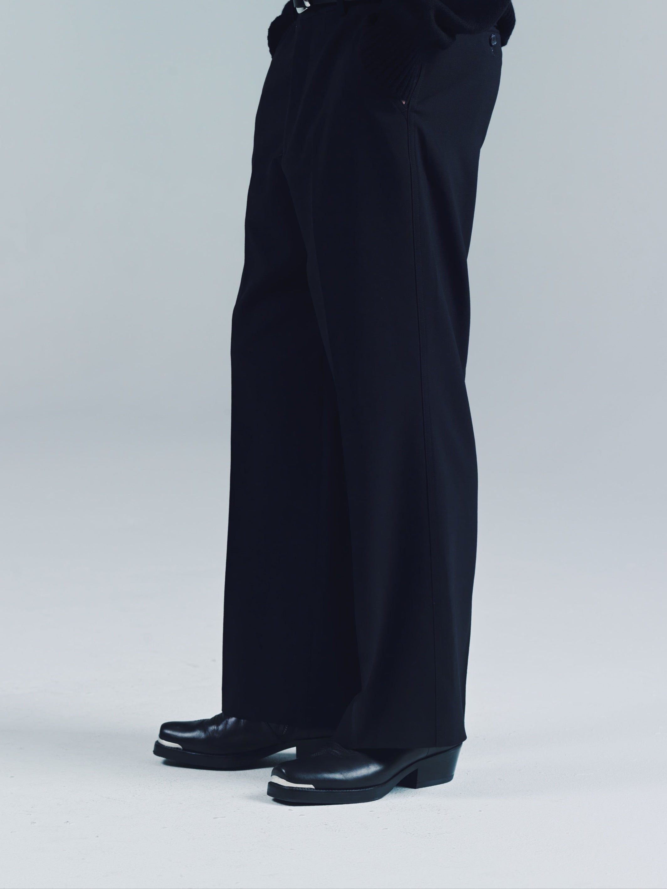 Fully constructed waistband with hook and eye closure, zip fly, front slash pockets, patch back pocket. A loose flared fit. Wear true to size for a more clean dressed up vibe or size up for a looser baggy fit. If you get it you get it. Wear em how you want. Who are we to tell you what to do. Dry clean and keep crispy. Never thought to crease them, but if that’s what your feeling make sure you do em right. On a Sunday afternoon listening to oldies with a beer close by.