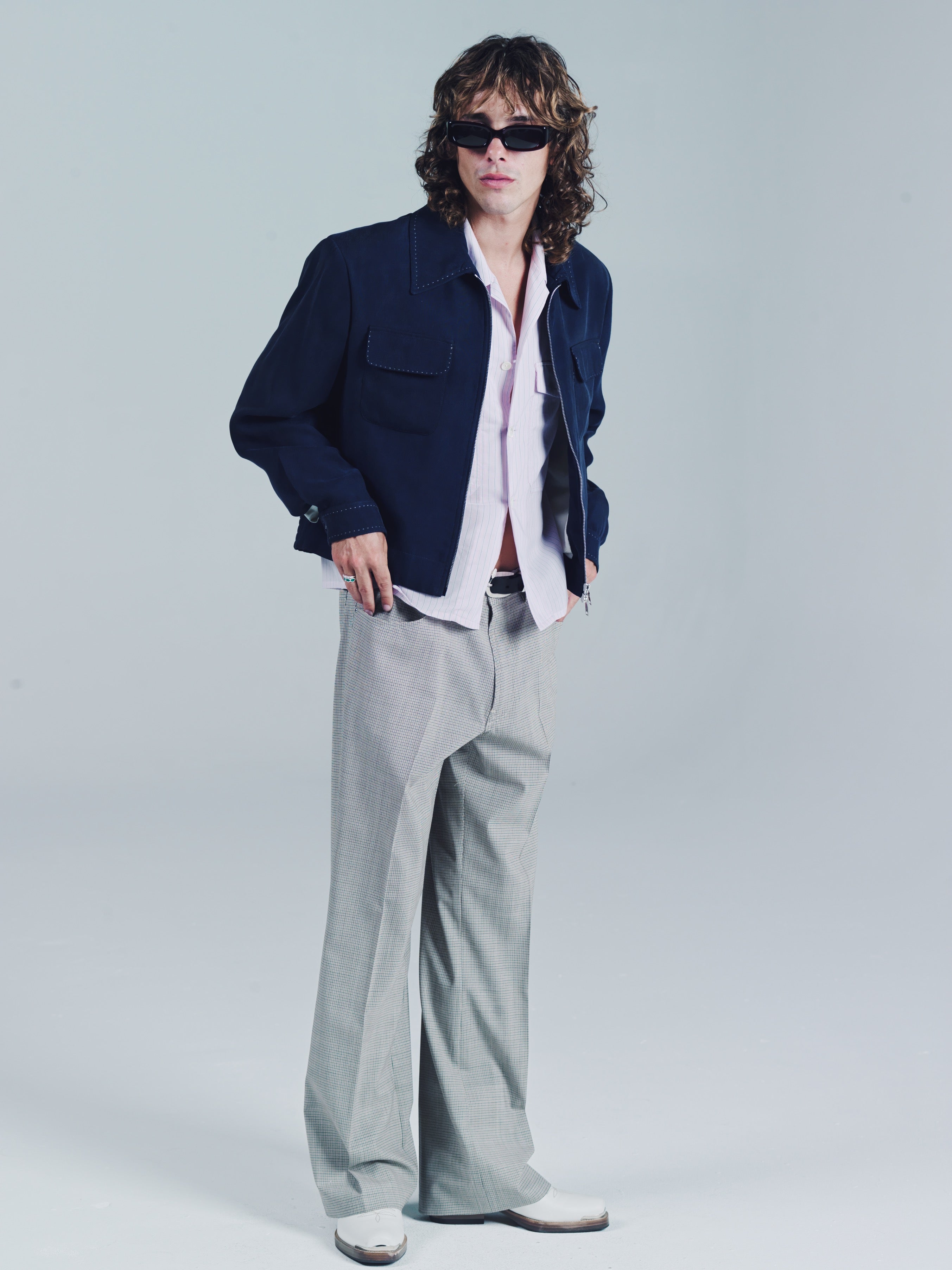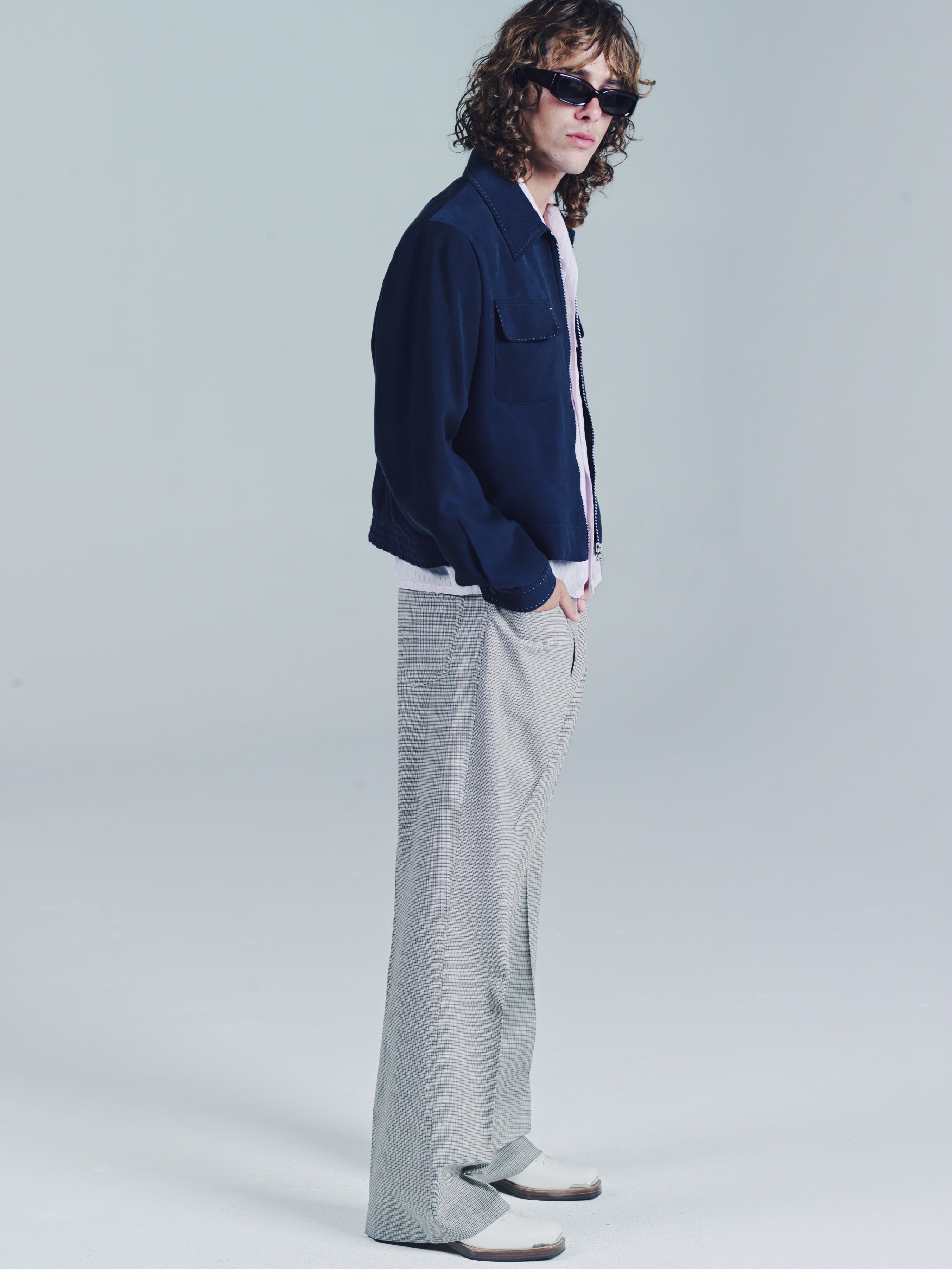 Fully constructed waistband with metal shank closure, zip fly, SL rivets, front scooped pockets, Two back patch pockets. 100% WV. Flared cut, trues to size. Wear them true to size to get that real suavecito vibe or size up for a more casual look. Whatever the case, stay ready so you don’t have to get ready. Model is 5'11 ft. and wears a Sz. 46Dry clean and keep crispy. If your really down then get them creased. If your really really down, then do the crease yourself while listening to Ralfi Pagan.