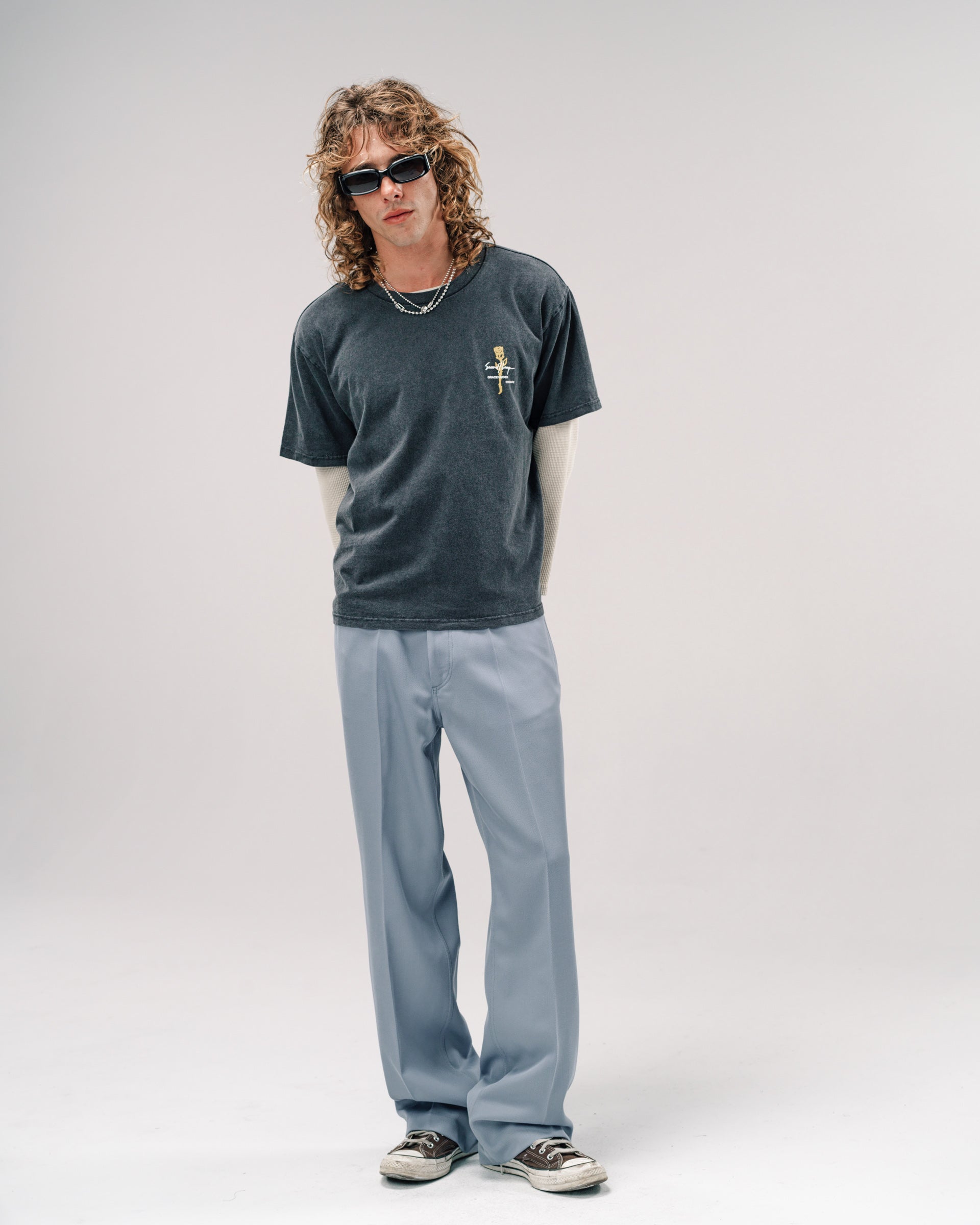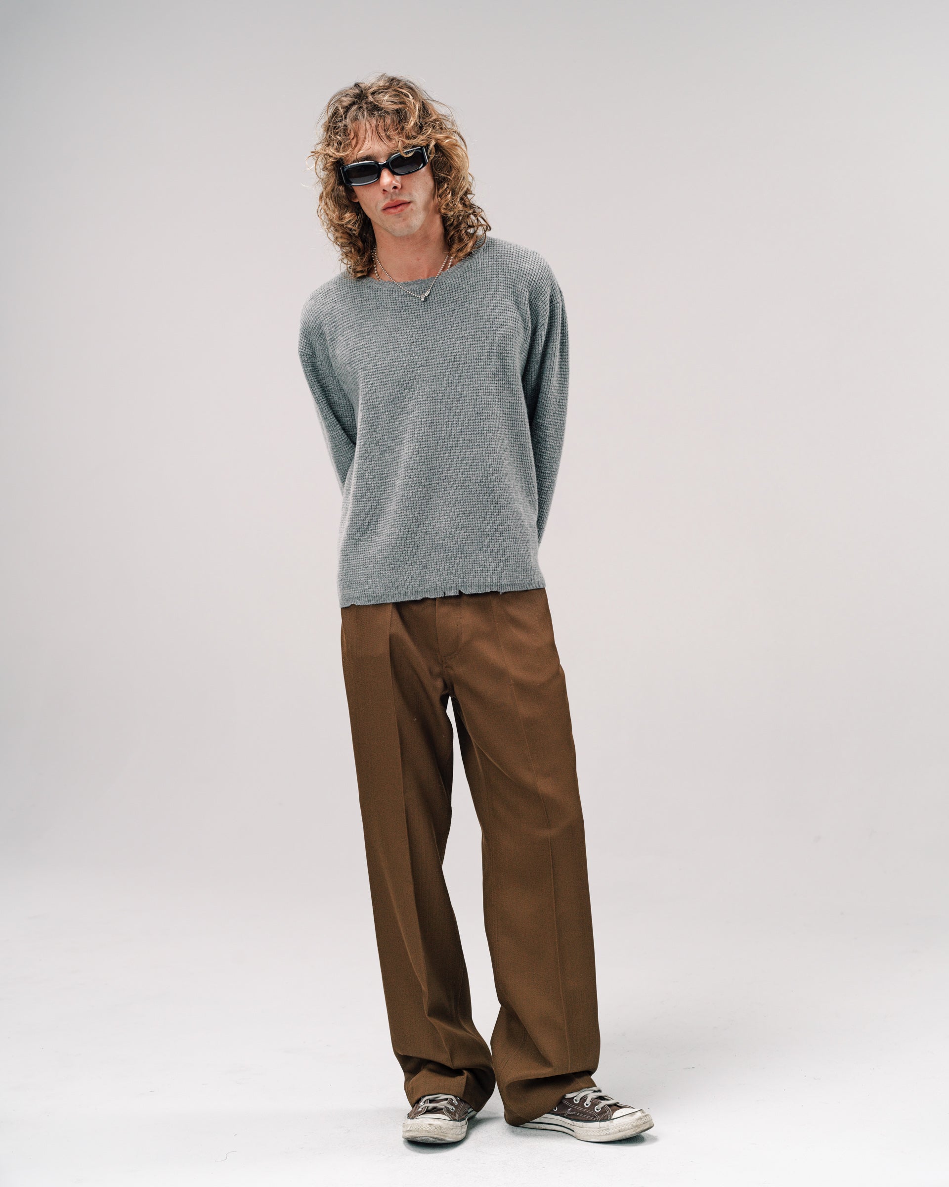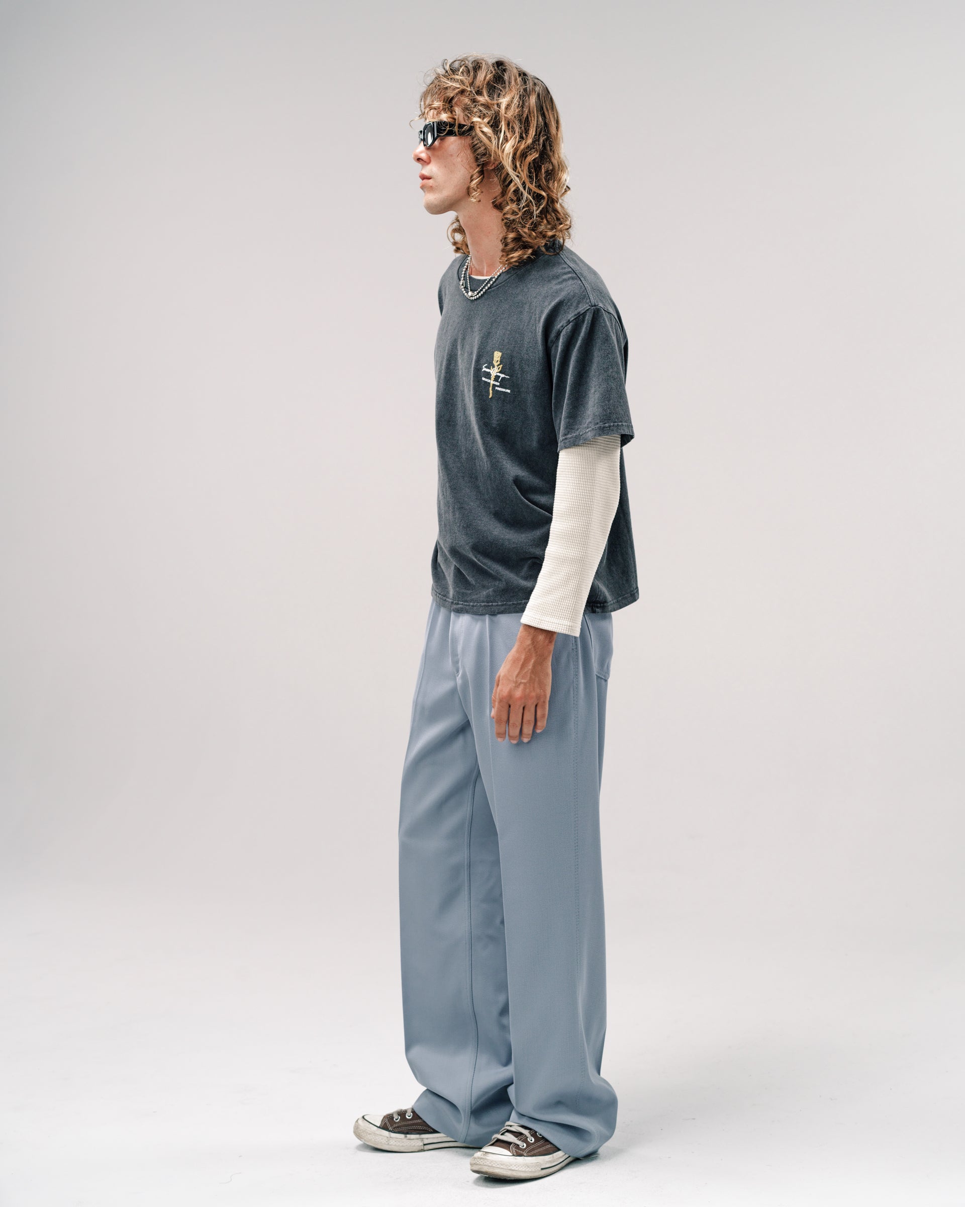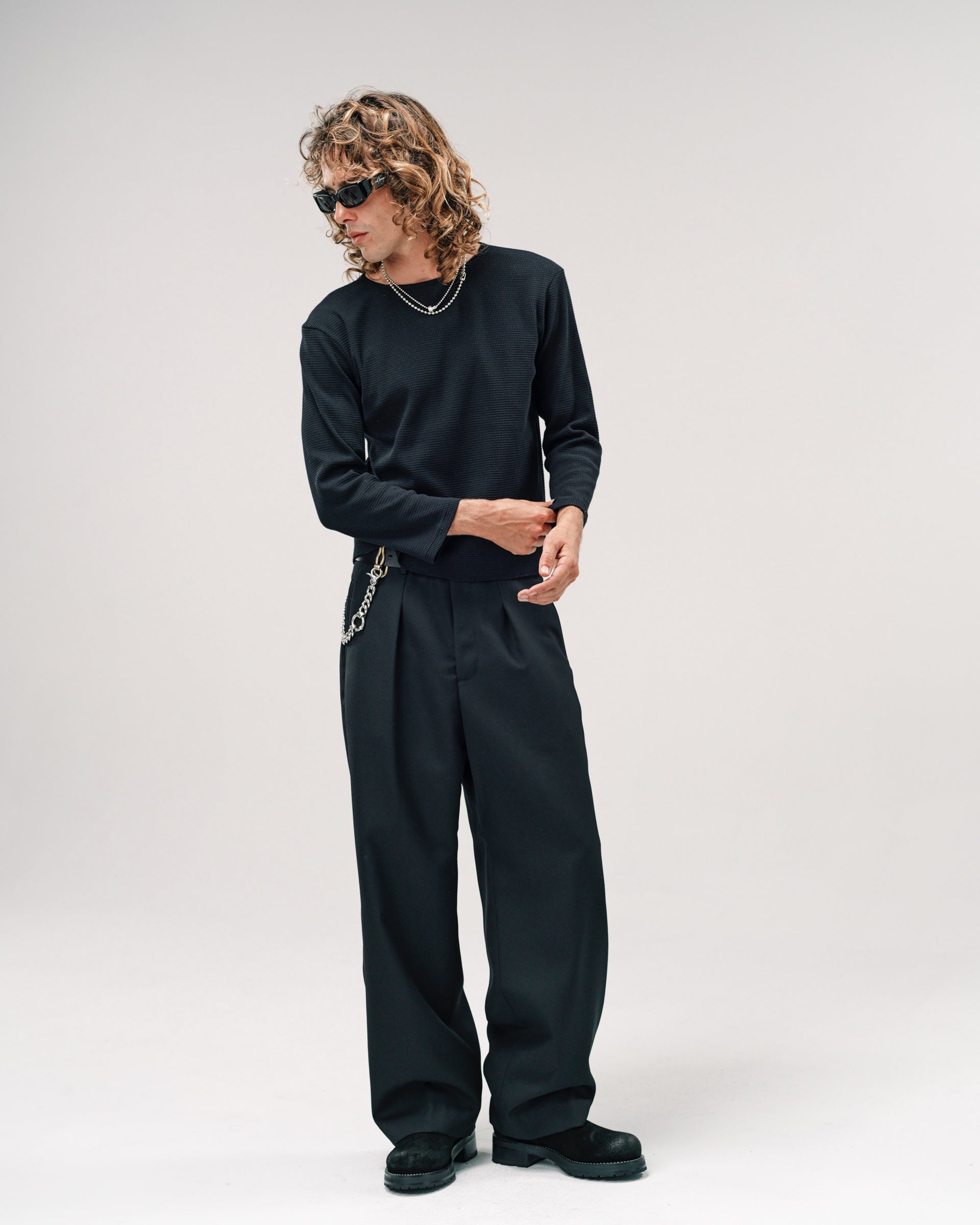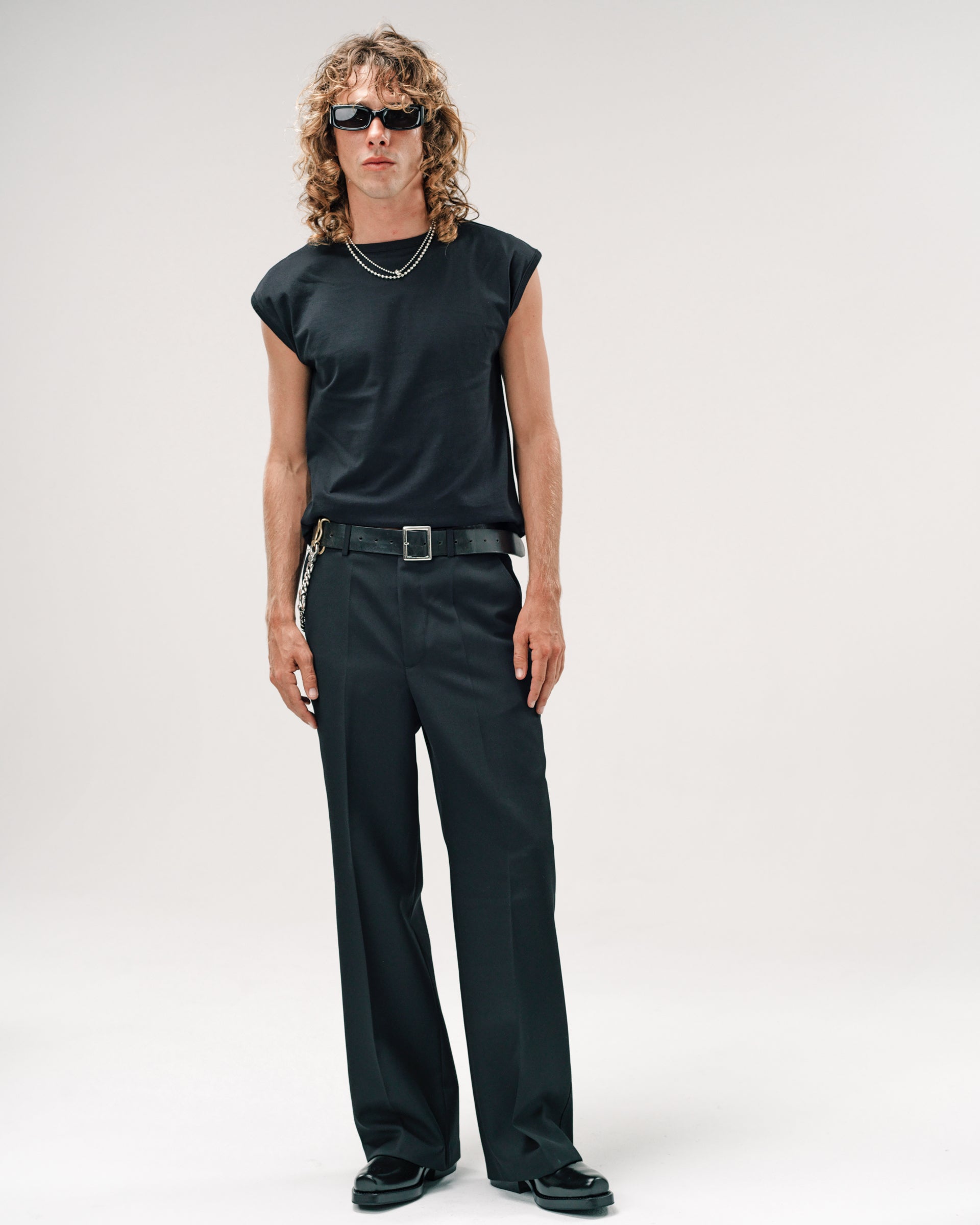 Tailored from premium wool and designed with intention, the trousers are sharply creased and ready to move. Made in Italy, every line and detail is considered—a reflection of Second Layer’s commitment to structure, integrity, and timeless form.