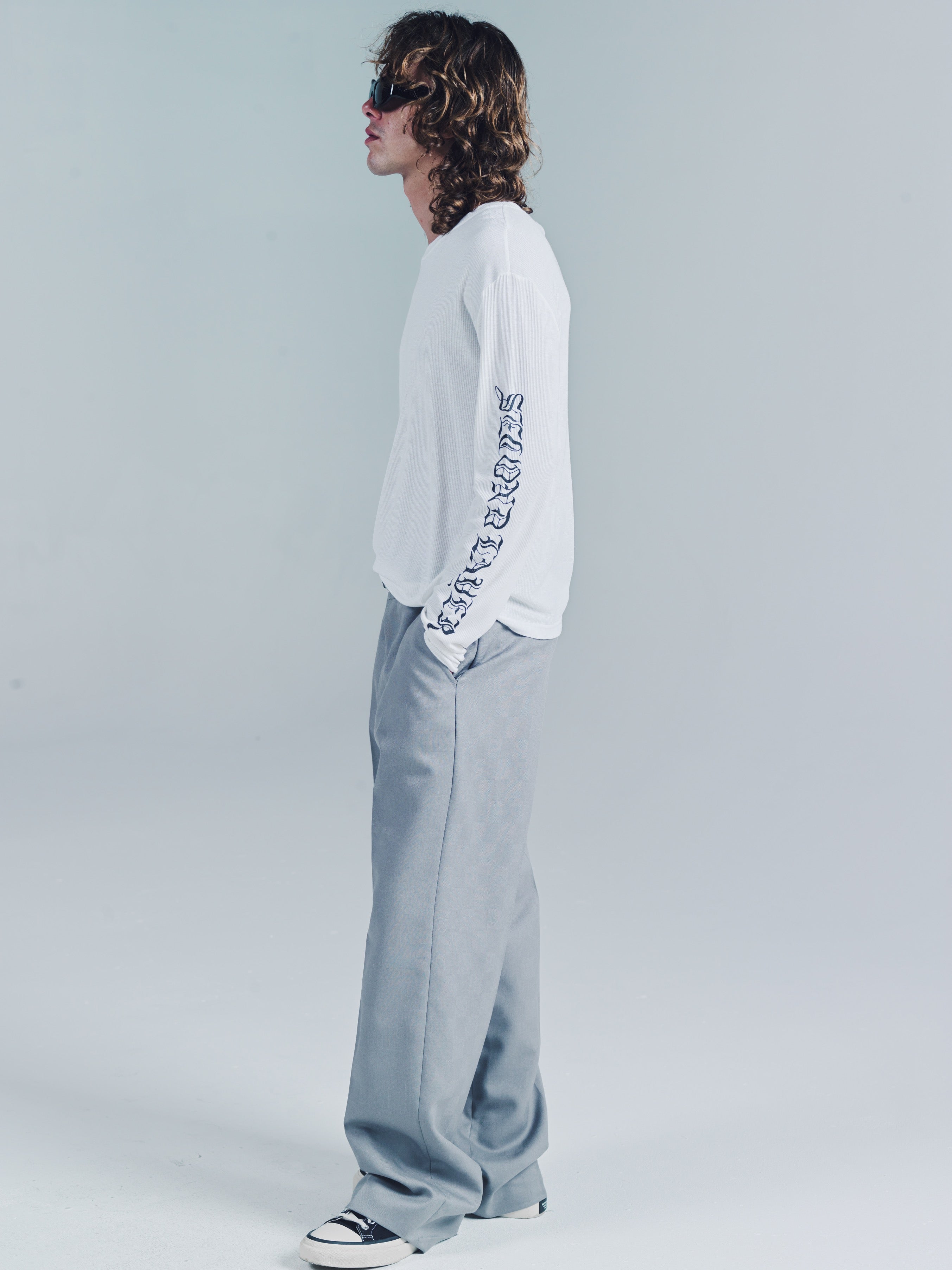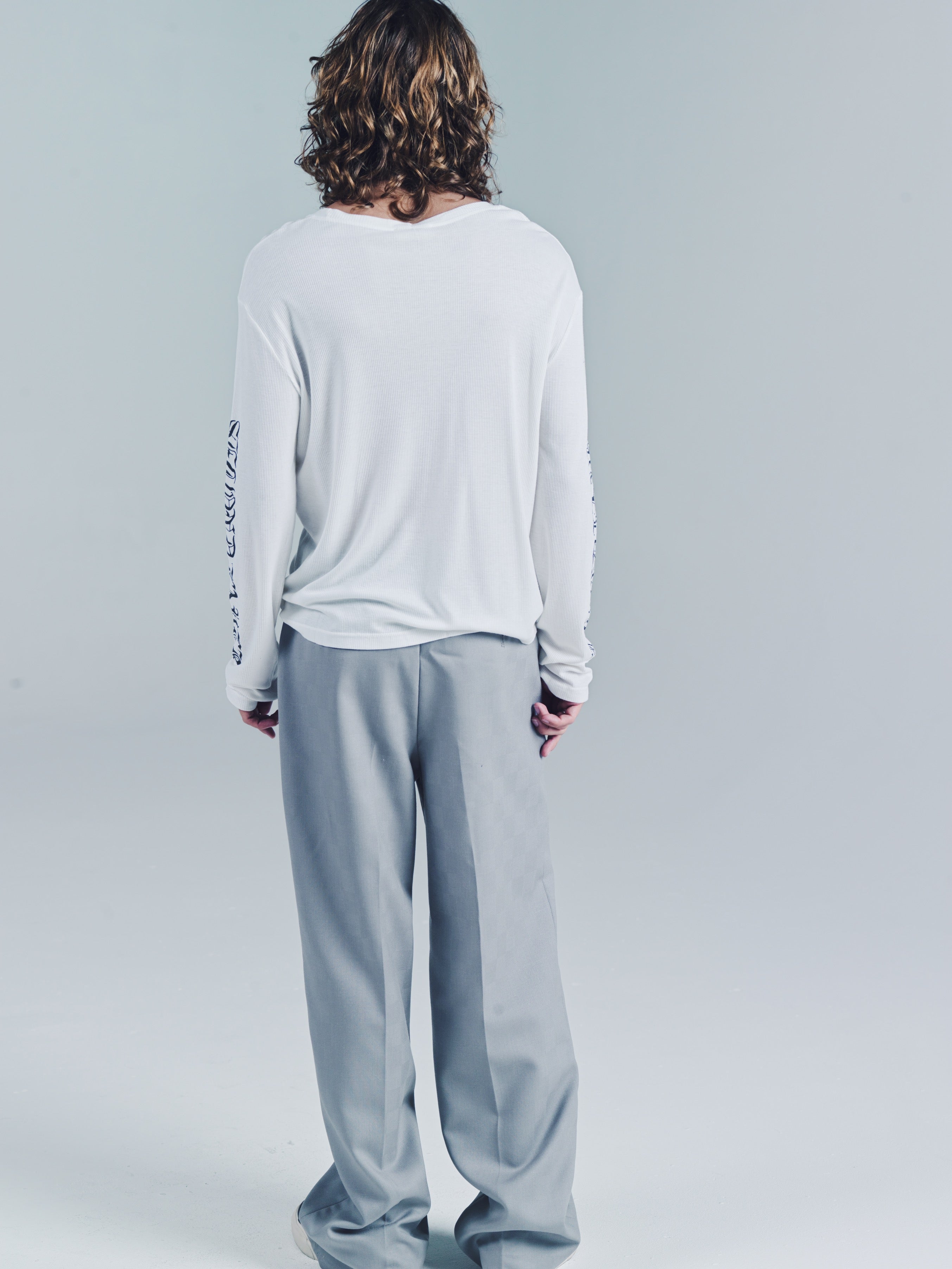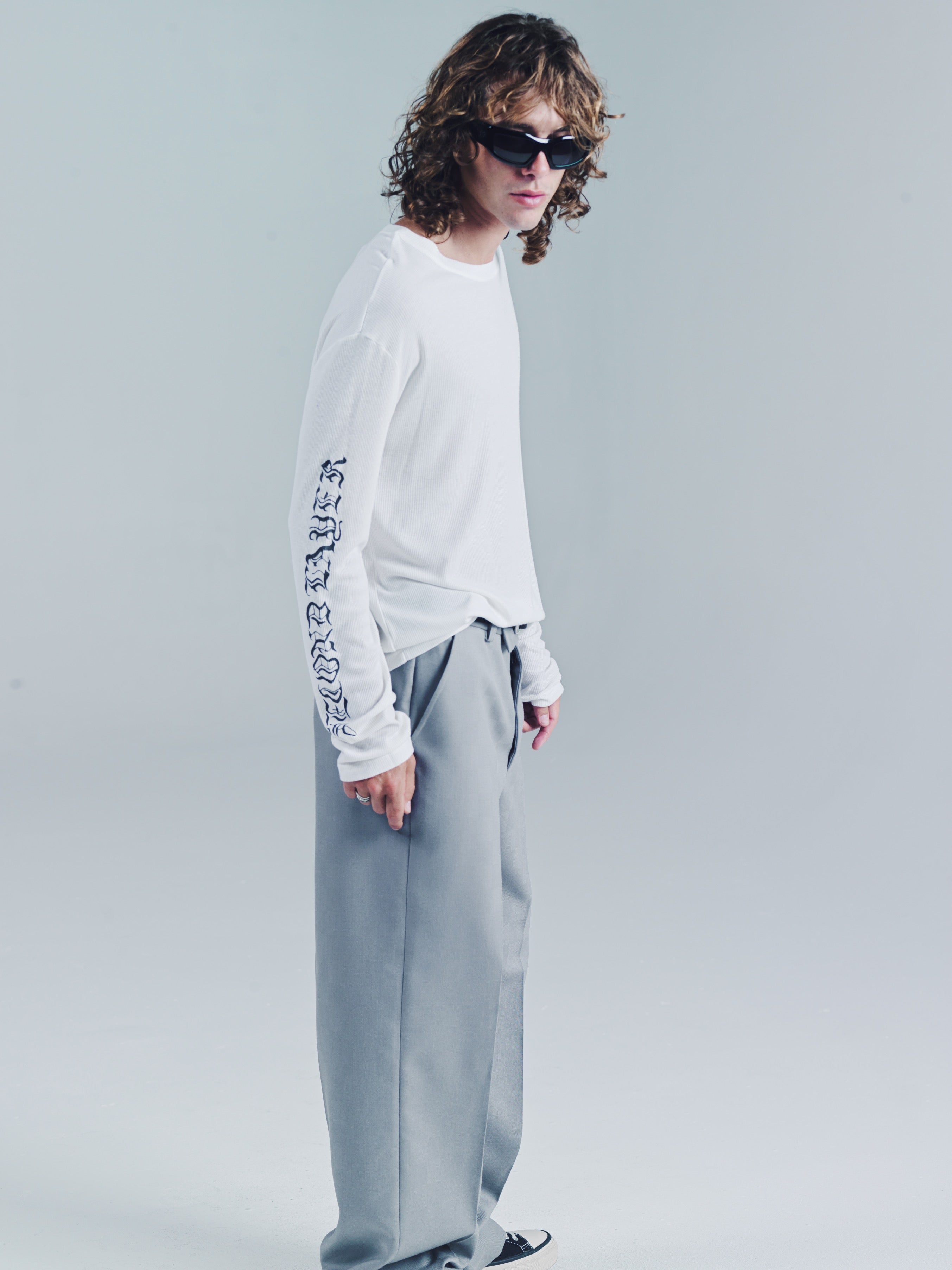 Ribbed long sleeve T-shirt. SL Skate wave graphic logo down both arms. Ribbed 100% Cotton. Slim relaxed fit. Wear it as a base layer. Size up for a baggy fit or size down for a tighter fit. Model is 5'11 and wears a Sz. M. Made in Portugal. It’s a T-shirt. Don’t blow it. If you’re a baller you can dry clean. If you care then wash in cold and hang dry then iron. If Your lazy just wash and dry. Any is acceptable. Its up to you to care for your own shit.