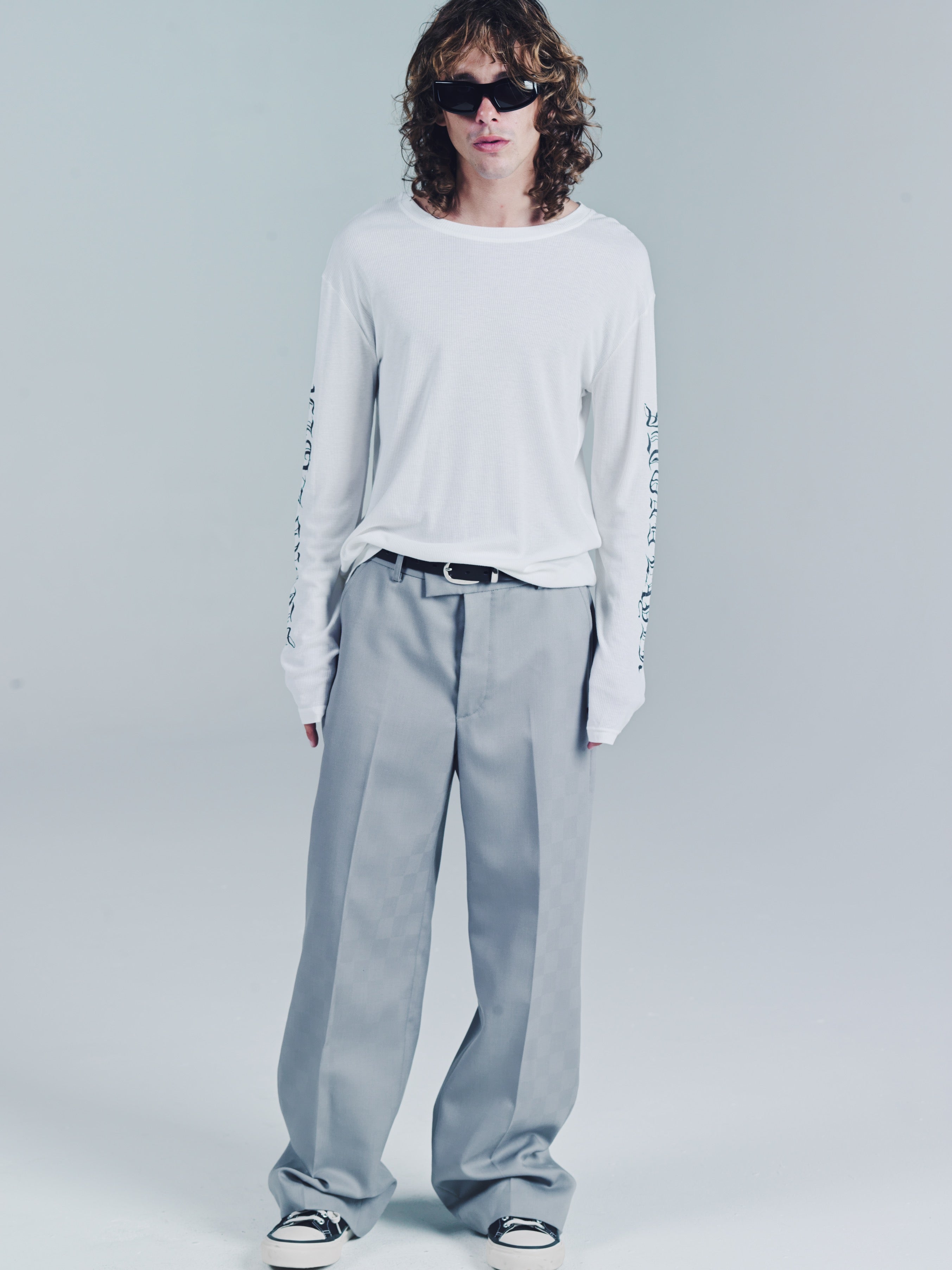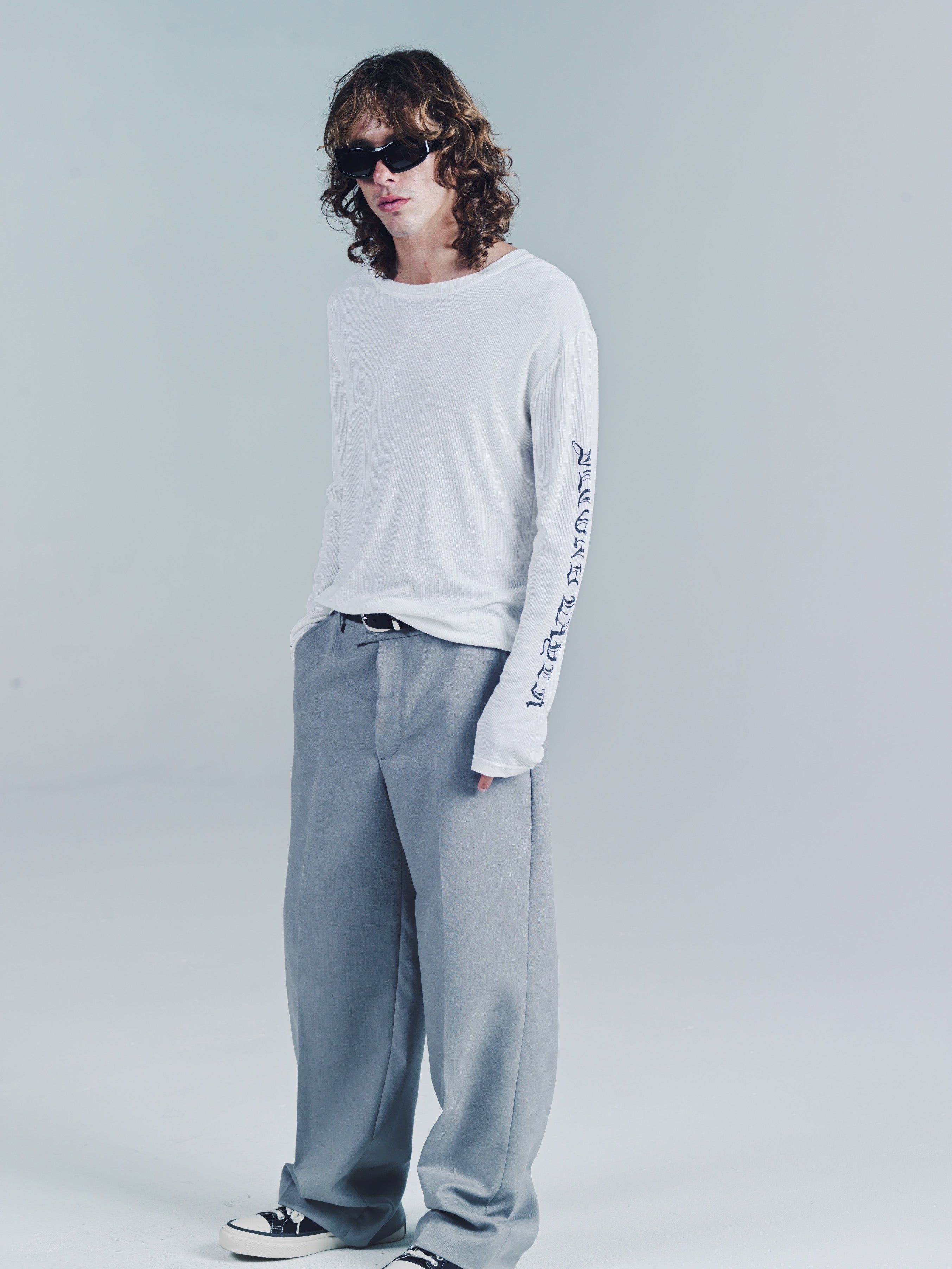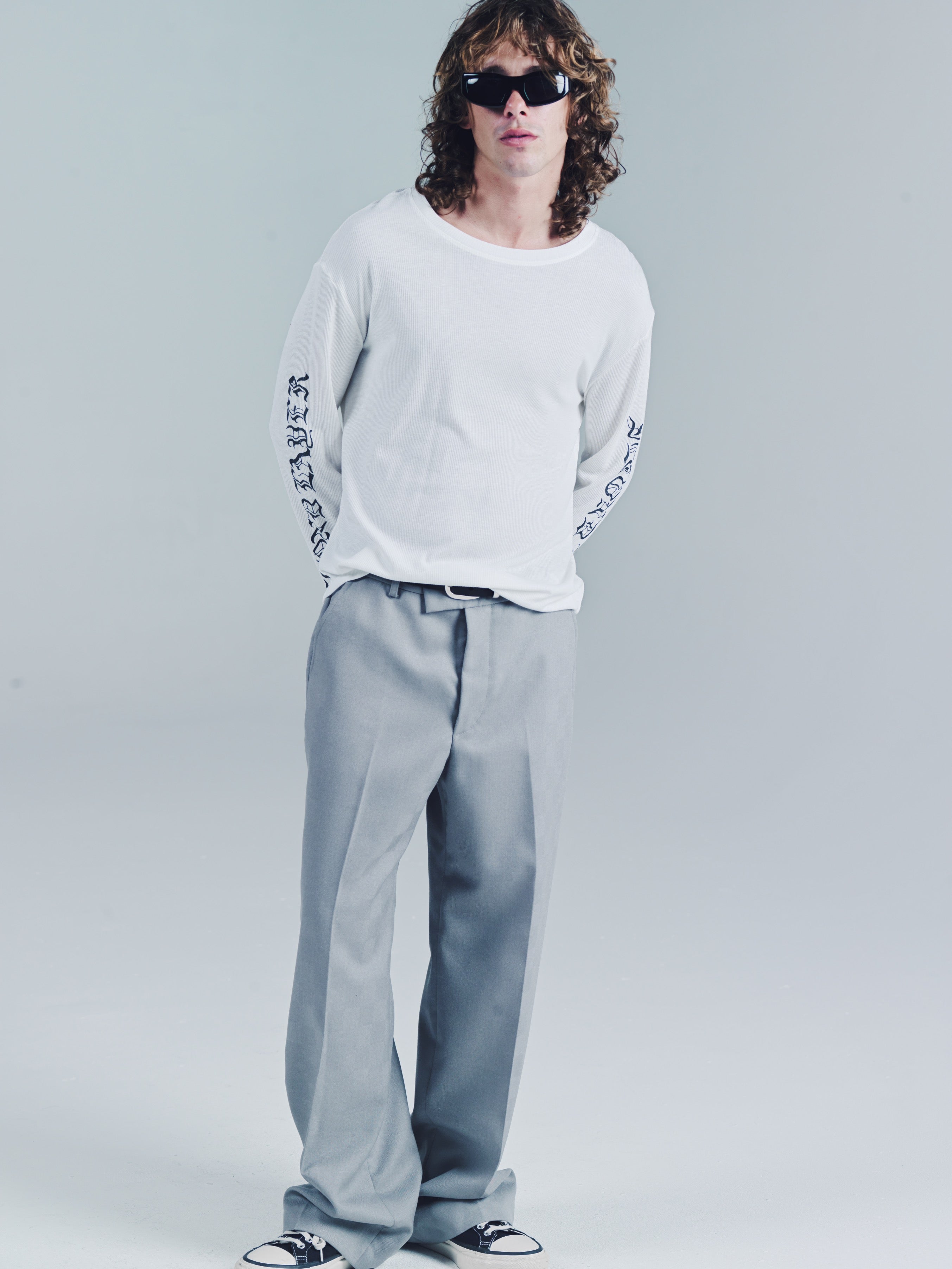 Ribbed long sleeve T-shirt. SL Skate wave graphic logo down both arms. Ribbed 100% Cotton. Slim relaxed fit. Wear it as a base layer. Size up for a baggy fit or size down for a tighter fit. Model is 5'11 and wears a Sz. M. Made in Portugal. It’s a T-shirt. Don’t blow it. If you’re a baller you can dry clean. If you care then wash in cold and hang dry then iron. If Your lazy just wash and dry. Any is acceptable. Its up to you to care for your own shit.