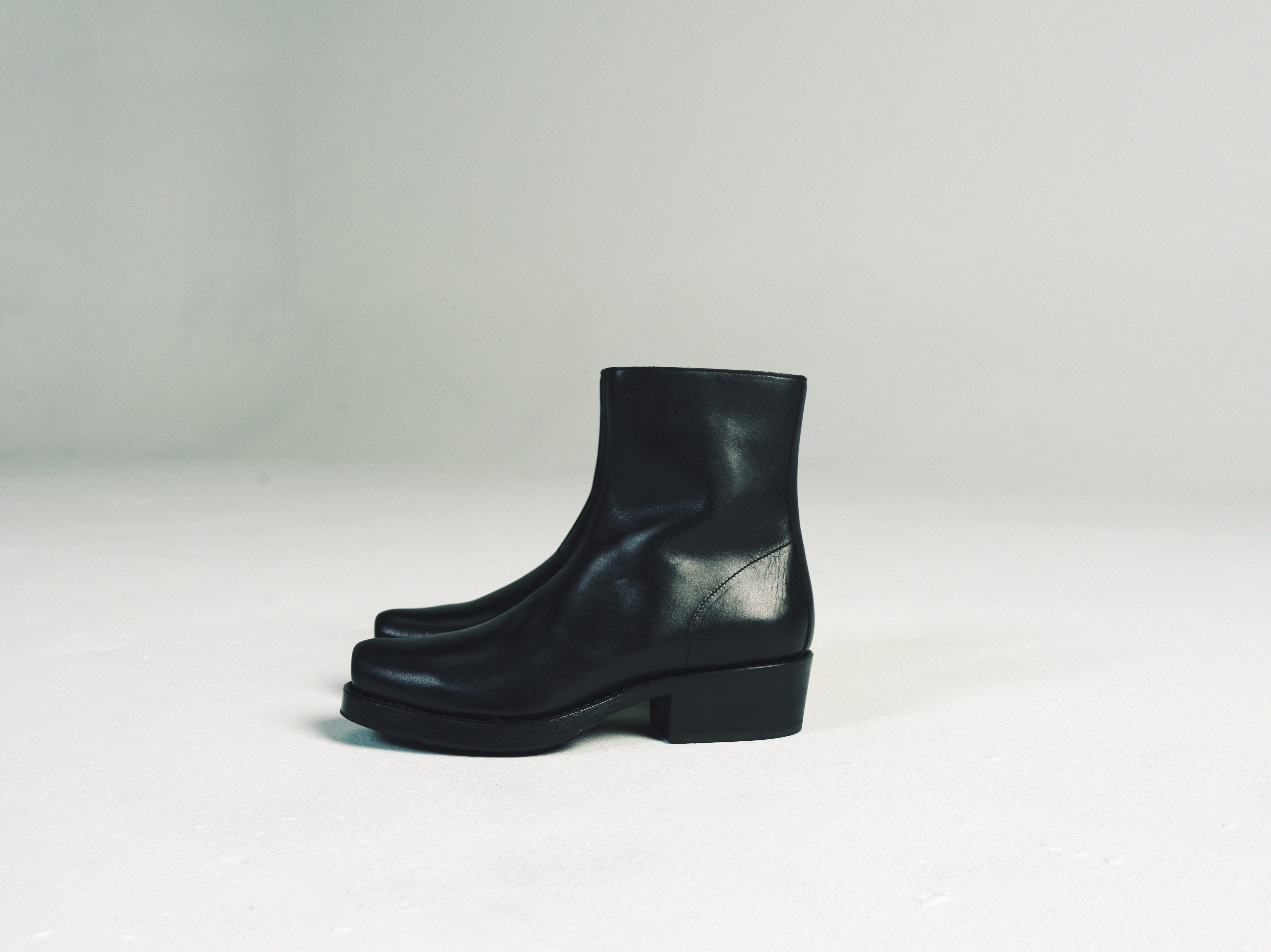 The Charro Boot is produced in a beautiful Italian calf leather. Its square toe gives it a strong stance and medial side YKK zipper make it easy to slide on and off. Its construction is pulled together with a Goodyear welt and a 50mm heel height.
