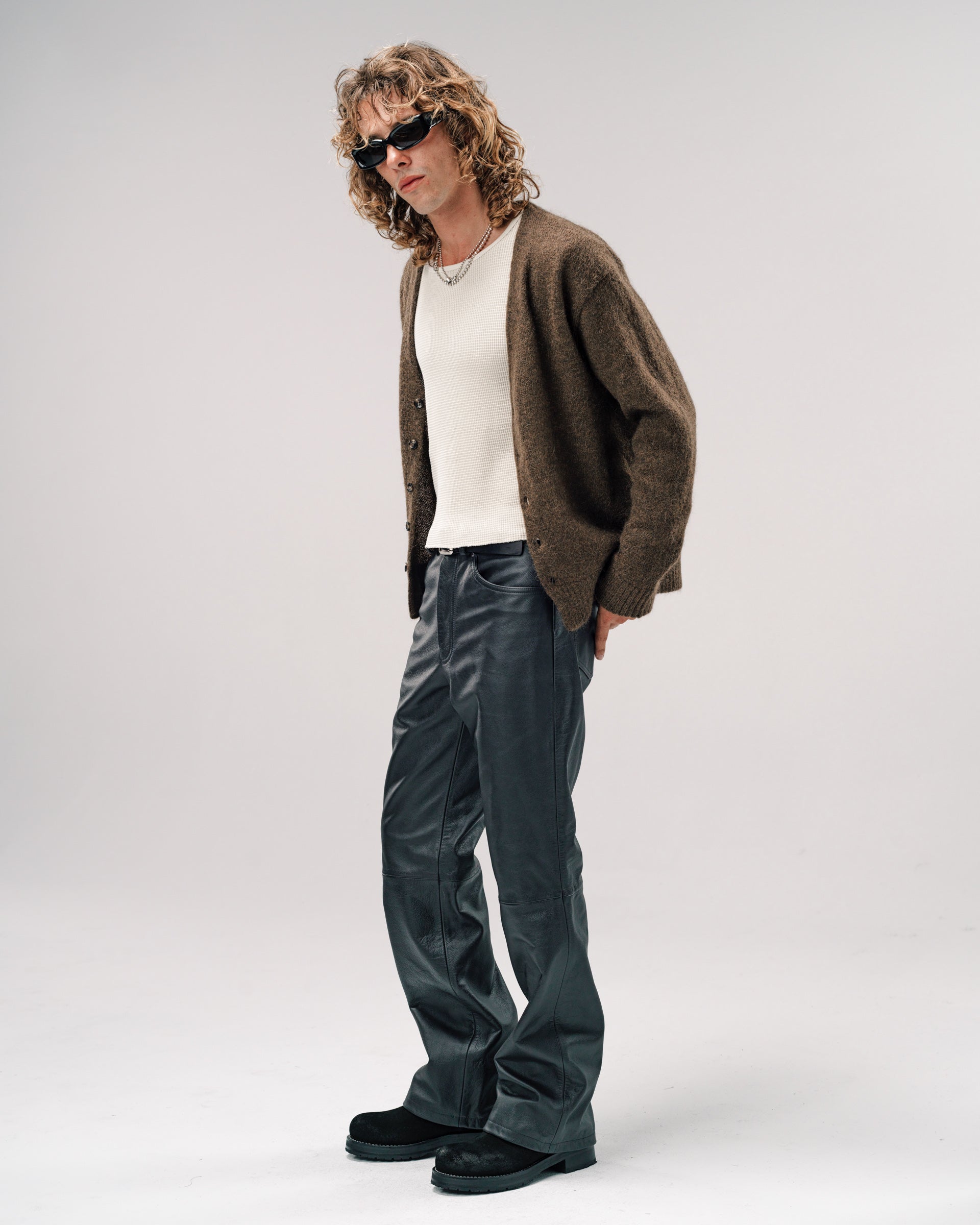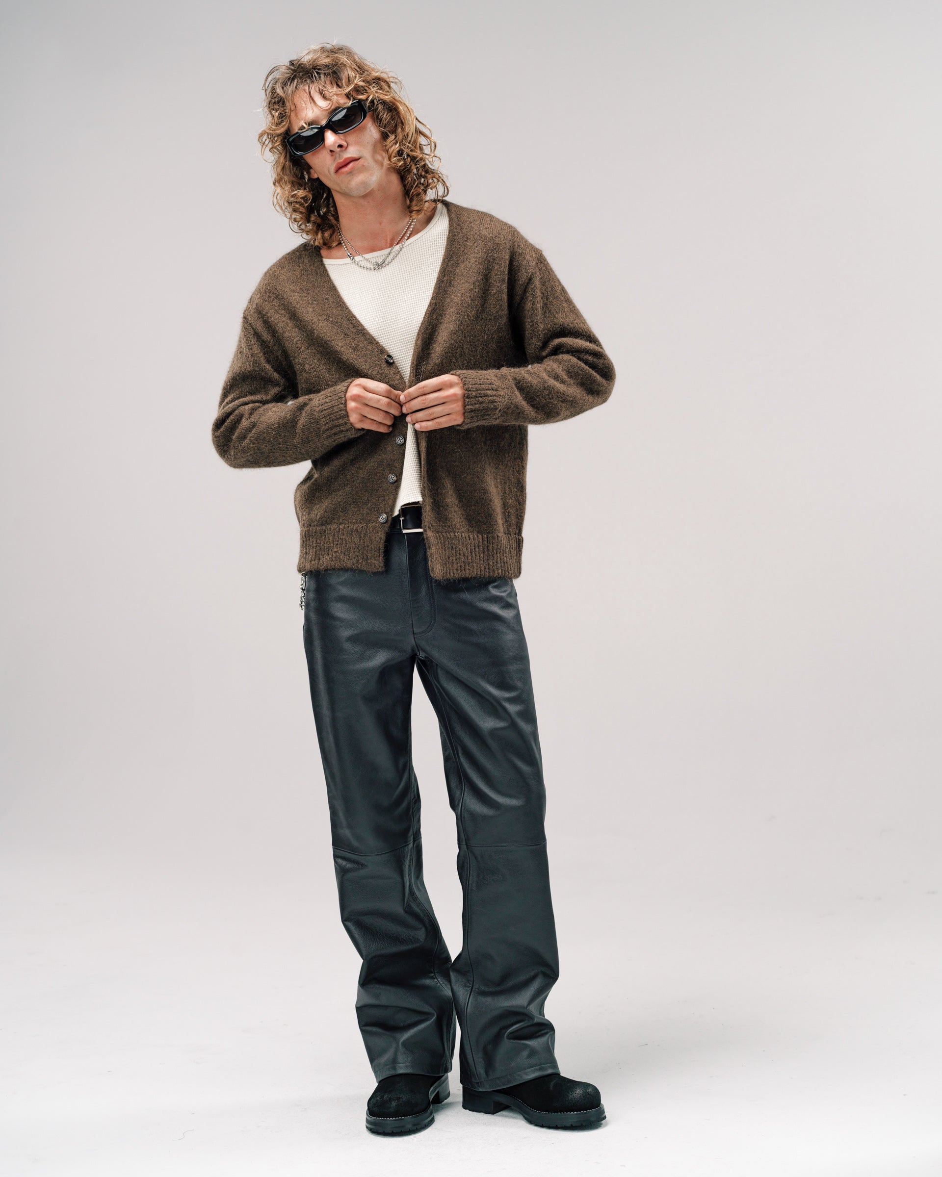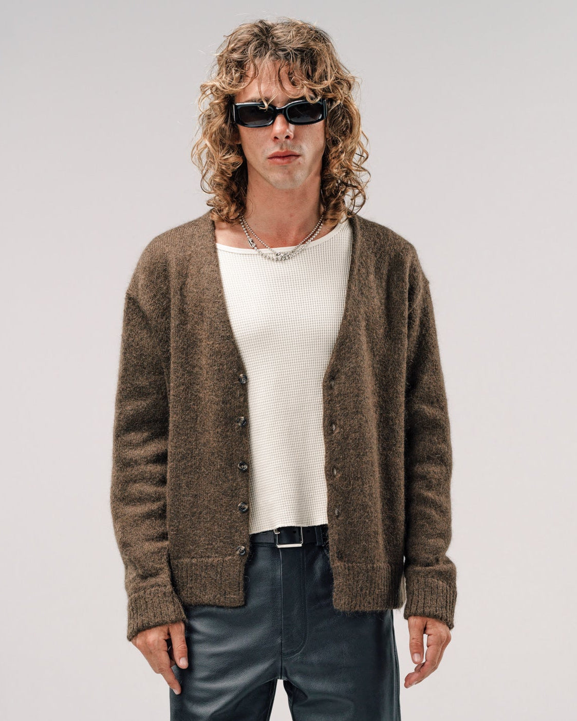 Relaxed fit Cardigan. 100% Mohair. Made in Italy A relaxed fit, V-neck button down cardigan. Brushed 100% Mohair.