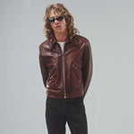 Cropped boxy fit. Oiled calf brown leather with fleece leopard print lining. Made in Italy.