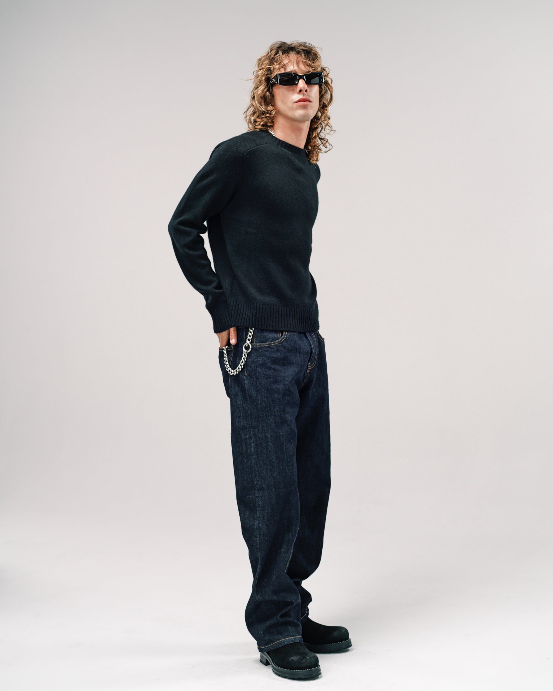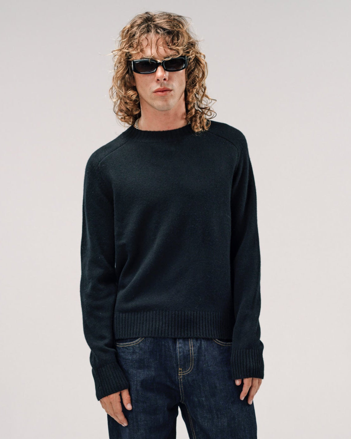 Classic fit. Pullover sweater, raglan sleeve, ribbed neck, cuffs, and hem. Made in Italy