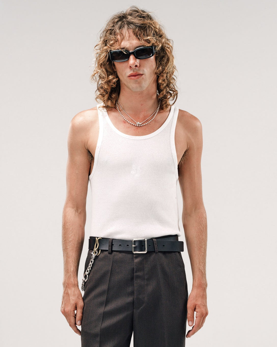 Ribbed Tank with SL embroidery. Slim fit. Circular knitted ribbed jersey. Made in Japan.