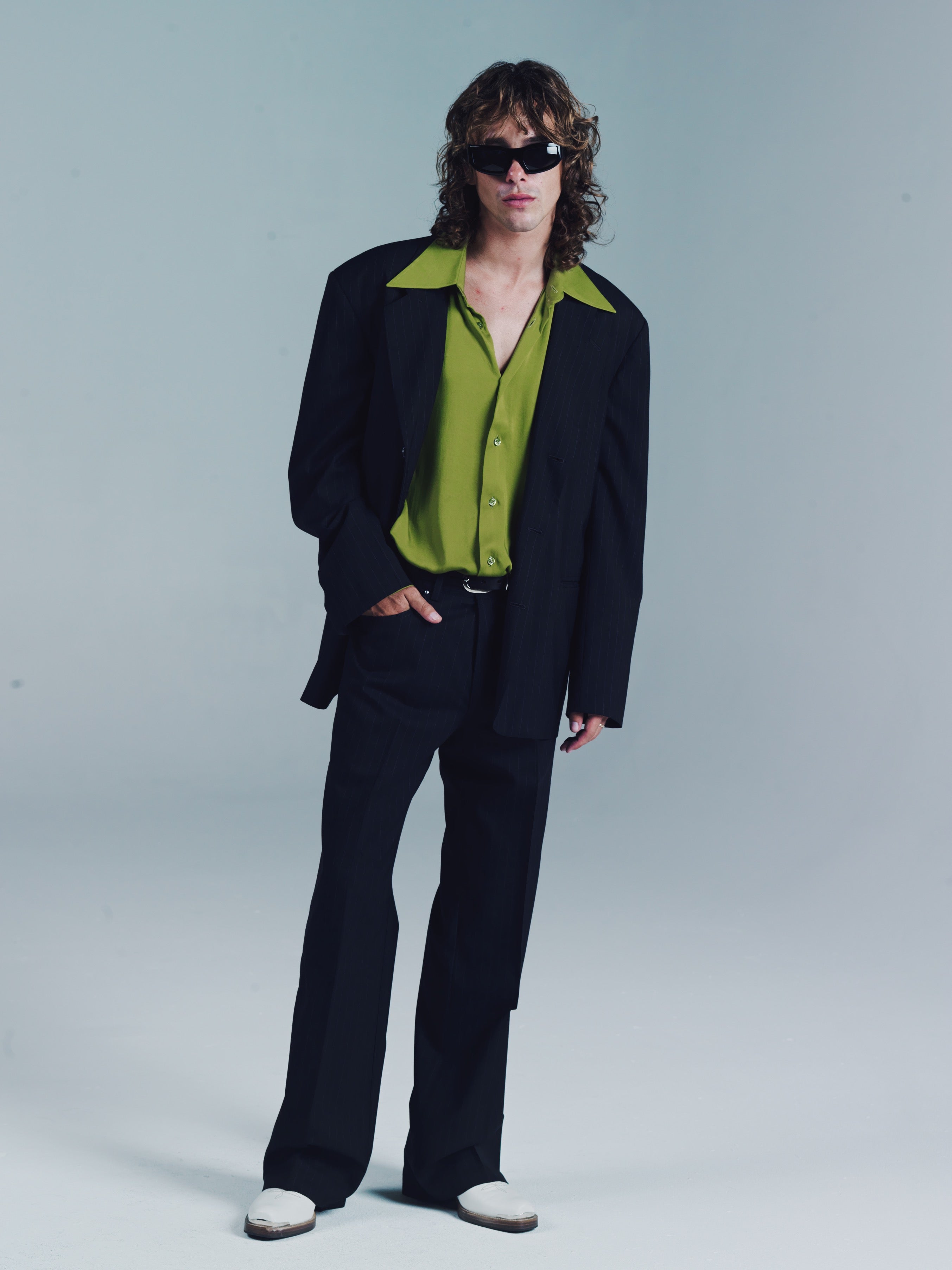 Single breasted wool 3 button closure, horn buttons, fully lined, front pouch pockets. Made of 100% Italian Virgin Wool. An ode to the late 80's and early 90's airport looks of our favorite style icons. Tamed Tailoring at its finest. No bells no whistles. Just beautiful fabric, exceptional craftsmanship, and all vibe. Sharp and relaxed, the same way we enter a bar with your ex-girlfriend and her new man in it. Check the inside breast pocket for a treat. Model is 5'11 and wears a sz. 48. Made in Italy. Take care of this and only dry clean it. Have it steamed. Don’t wait till the last minute. When it needs to be sent out to be cleaned make sure to do it then. Always put it back in your closet crispy. If you stay ready you don’t have to get ready.