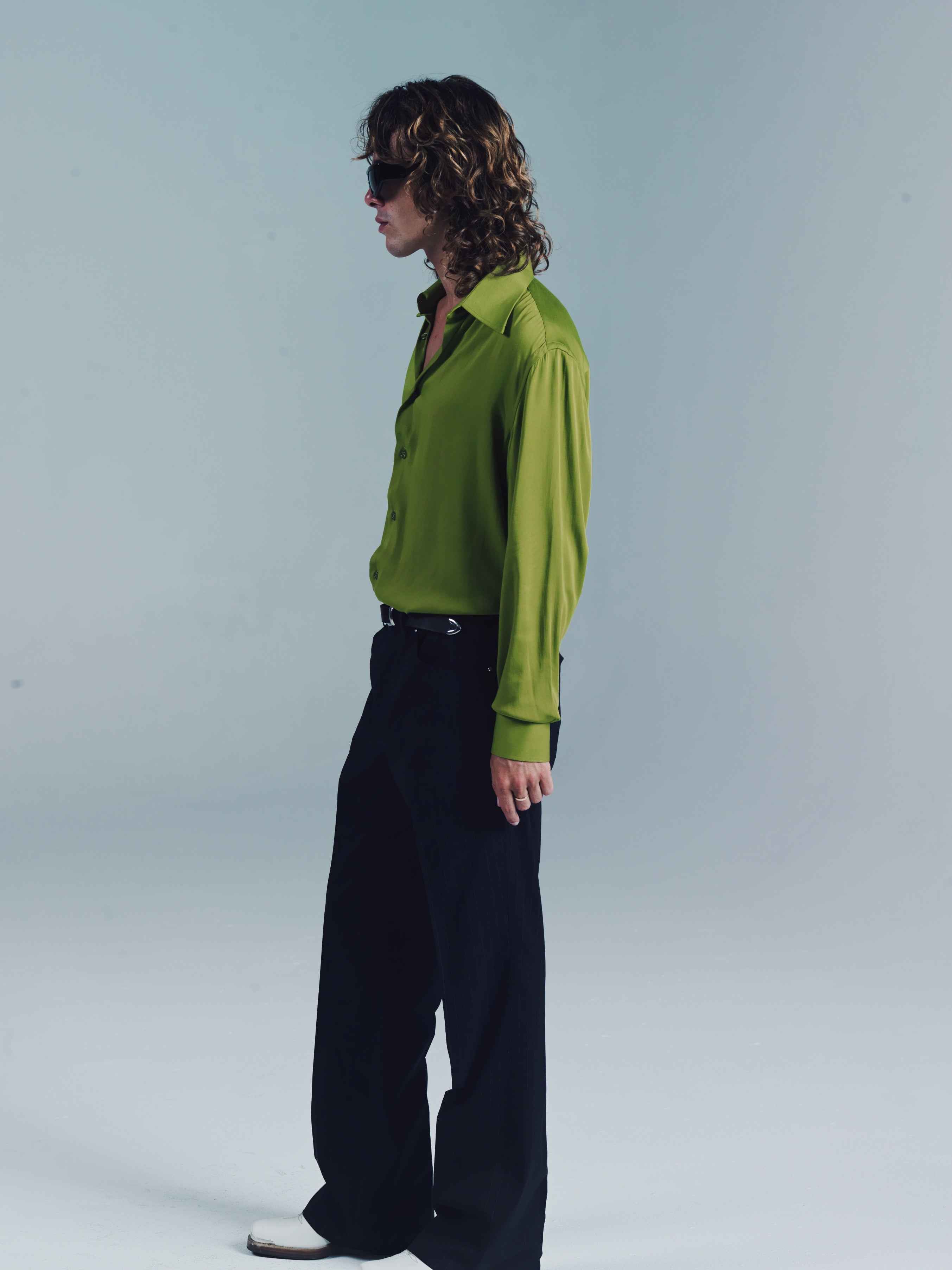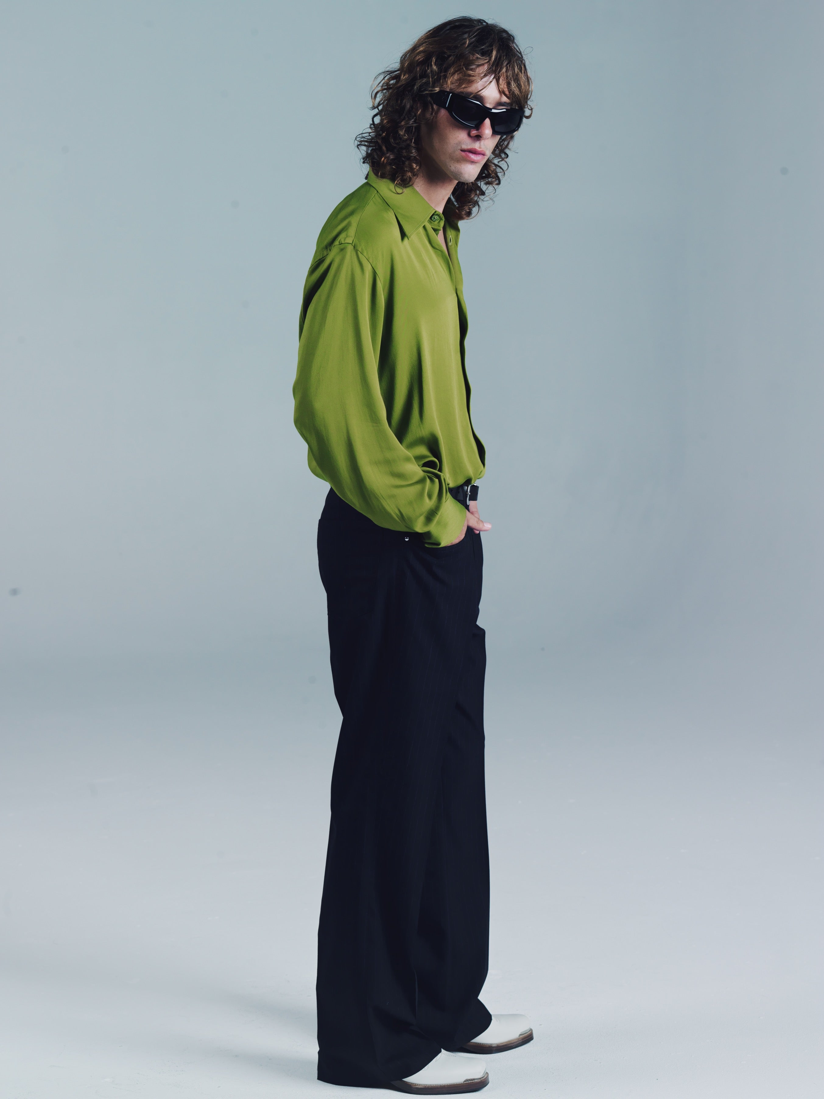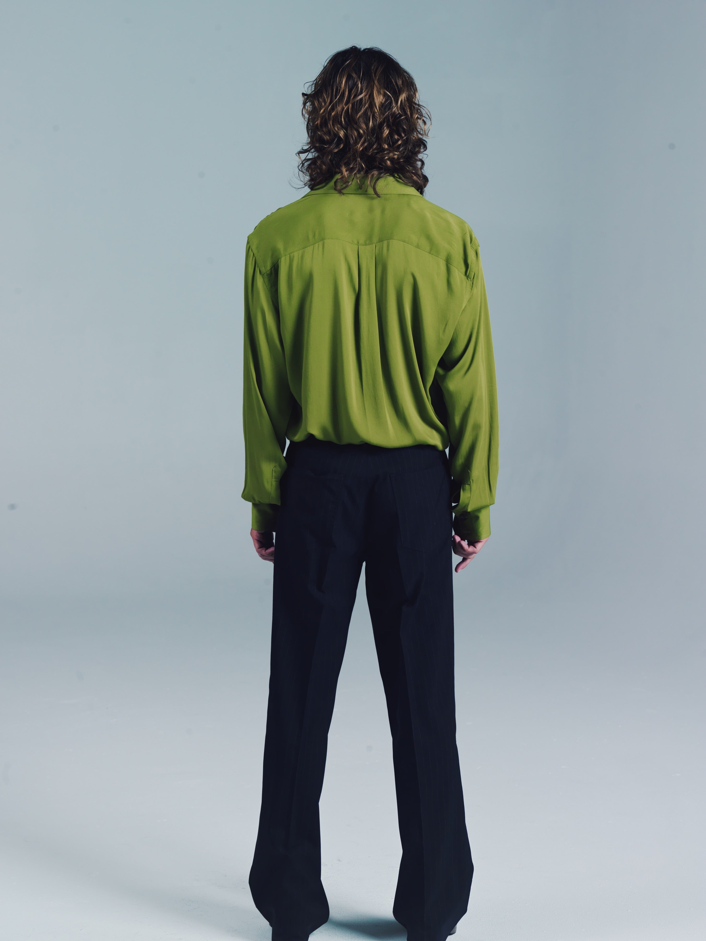 Fully constructed waistband with metal shank closure, zip fly, front scooped pockets, Two back patch pockets. Flared cut, trues to size. Wear them true to size to get that real suavecito vibe or size up for a more casual look. Whatever the case, stay ready so you don’t have to get ready. Model is 6ft. and wears a Sz. 46 Dry clean and keep crispy. If your really down then get them creased. If your really really down, then do the crease yourself while listening to Ralfi Pagan.